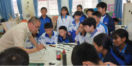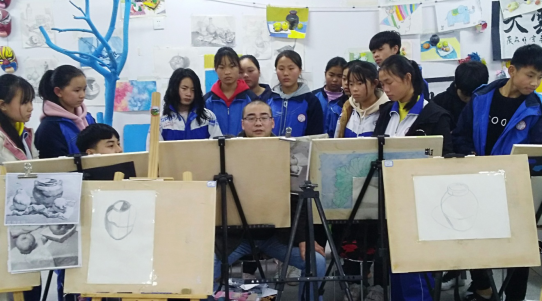 从2019年3月起至今,伟德官网艺术学院陈宏江老师在碧江区桐木坪九年一贯制学校进行美术教学支教,并针对该校美术特长生作了两次专题讲座,为保证该校特长生的学习进度他坚持每课必示范的授课原则。