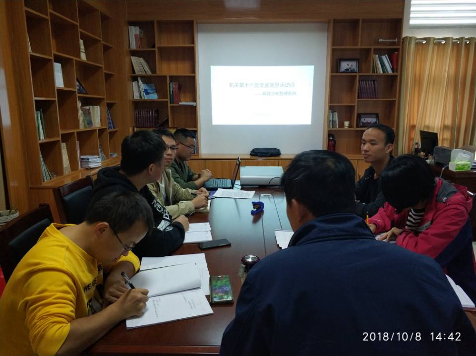 10月8日下午,机关党委第十六支部在8525会议室召开党课学习会议,专题学习新修订的《宗教事务条例》。会议由支部统战委员、发规处副处长吴承品同志主持,教学质量检测评估中心副主任(主持工作)张杰同志、社会服务中心负责人王岚同志及其他支部党员同志参加了会议。
