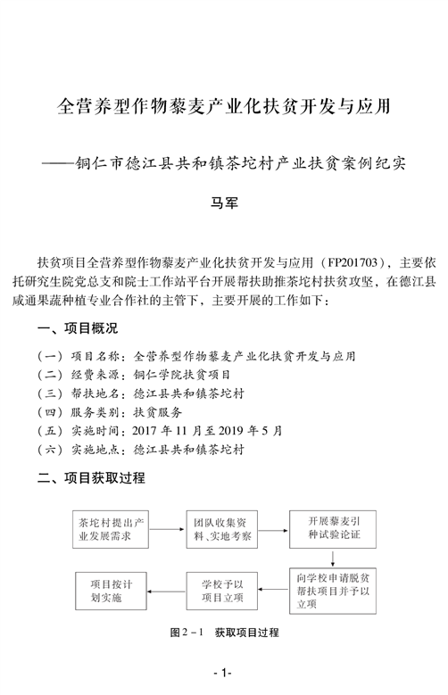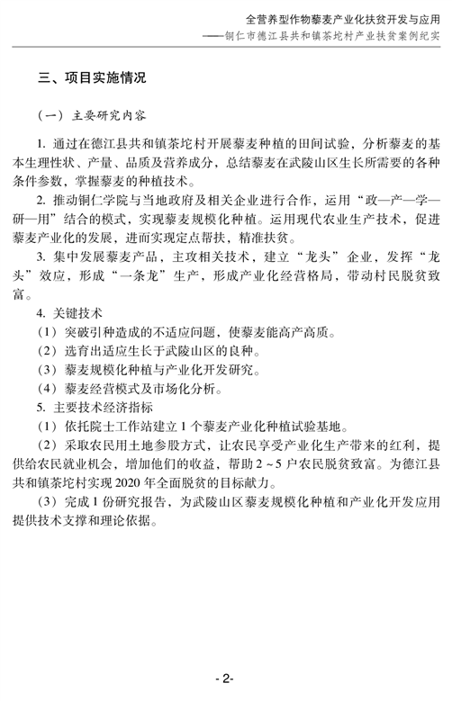 全营养型作物藜麦产业化扶贫开发与应用——铜仁市德江县共和镇茶坨村产业扶贫案例纪实