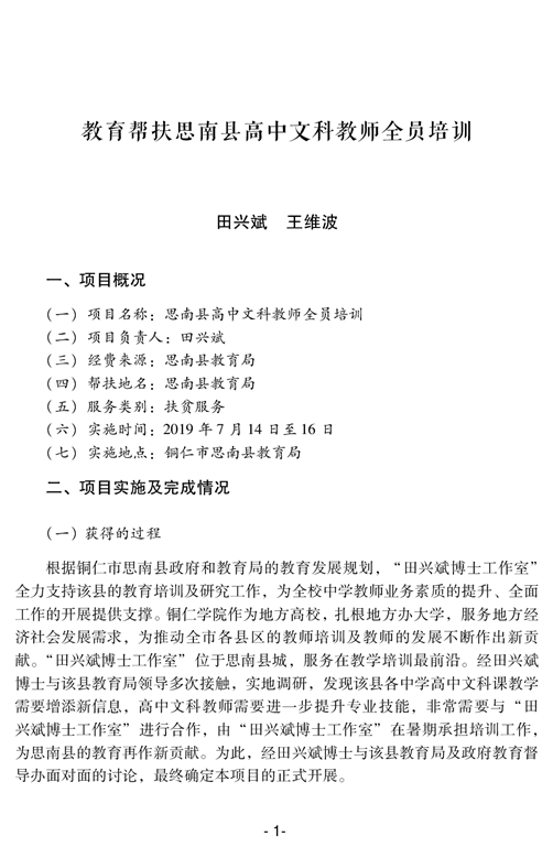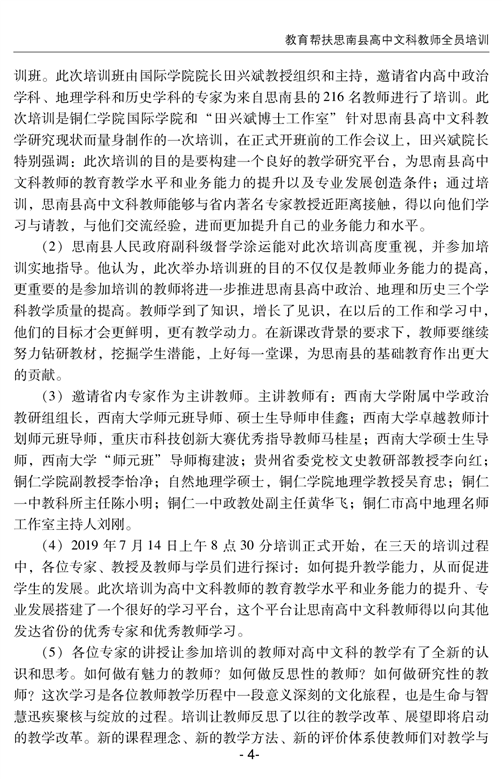 教育帮扶思南县高中文科教师全员培训