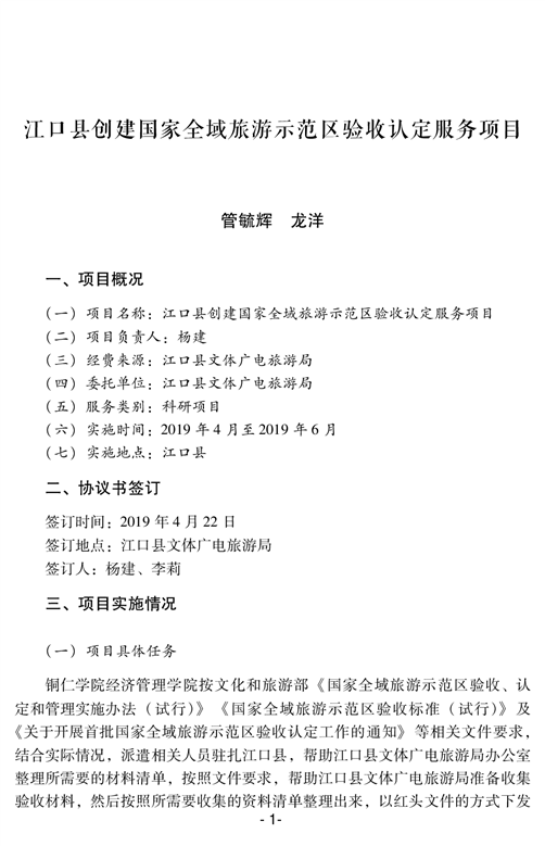 江口县创建国家全域旅游示范区验收认定服务项目