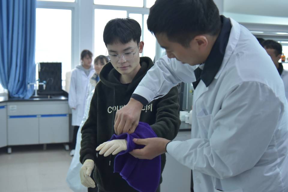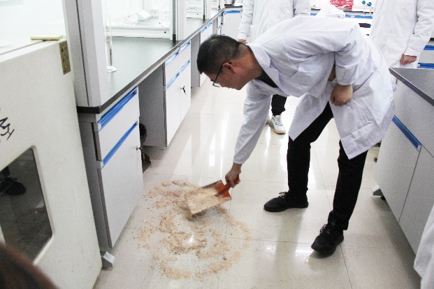 下午15:30,在现场总指挥杨建副校长的主持部署下,此次实验室安全应急演练正式开始。首先进行的是实验室危化品泄露应急处置演练,在应急演练中,参演师生生动模拟了少量硫酸泄漏后,人员的有序撤离、现场封锁、事故危害评估、事故有序上报、应急救援人员的个人防护、消除危险源、现场恢复、事故发生后的调查与评估等规范化应急处置流程。
