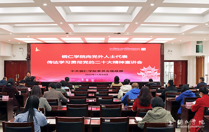11月24日,学校党委统战部在行政楼8501会议室组织召开党外人士代表传达学习贯彻党的二十大精神宣讲会。党委委员、党委统战部部长刘德平作宣讲报告。学校党外高级知识分子代表、各民主党派bv伟德国际1946支部(社)成员代表、非党人大代表和政协委员等40余人参加宣讲会。