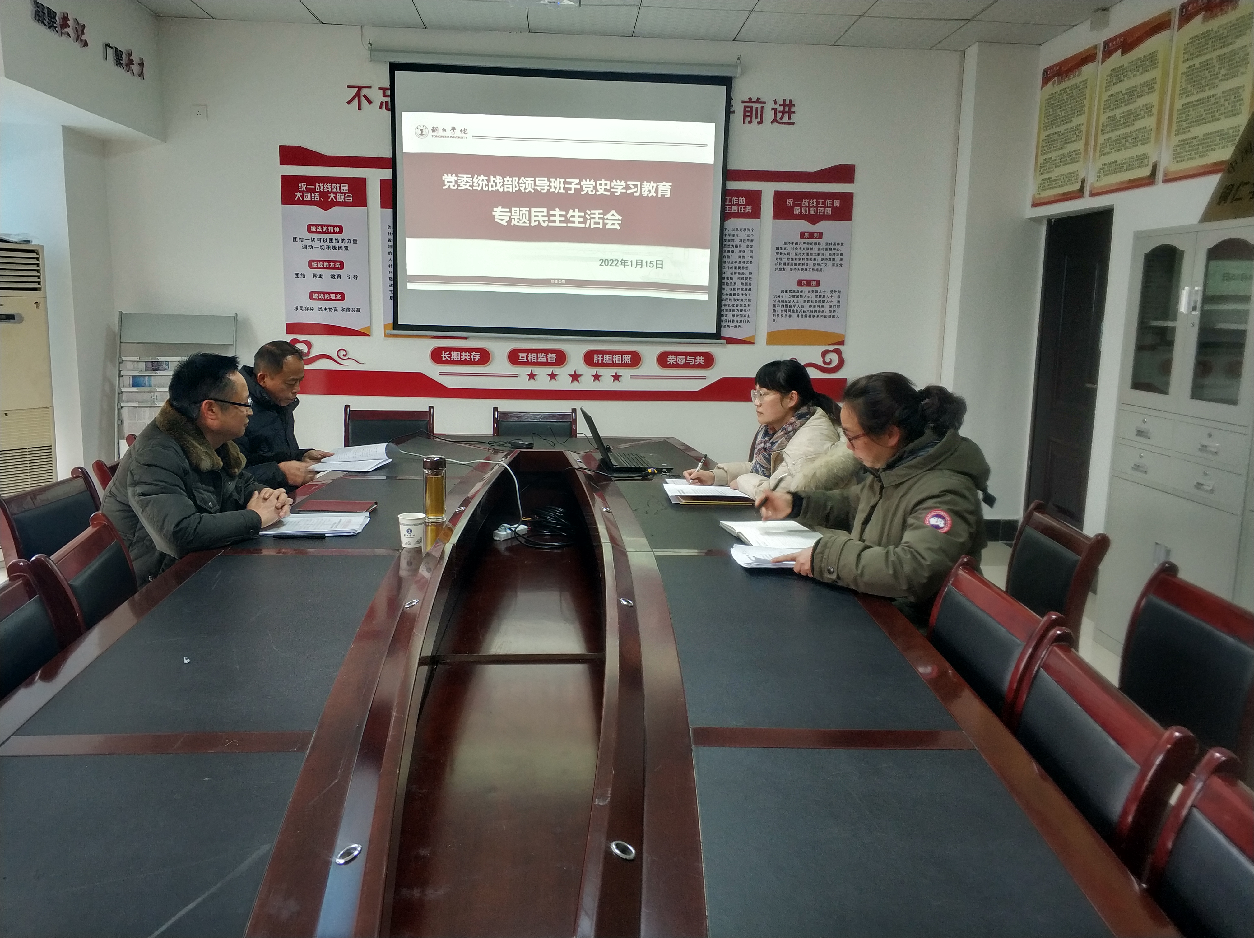 按照中央、省委、市委和校党委关于开好党史学习教育专题民主生活会的通知精神和要求,校党委统战部领导班子及成员紧扣党史学习教育专题民主生活会主题,深入学习研讨、广泛听取意见、切实聚焦5个方面查找问题并开展党性分析、深入谈心交心开展批评与自我批评、立行立改落实整改,在充分准备的基础上,于2020年1月15日召开了统战部领导班子党史学习教育专题民主生活会。会议由校党委委员、统战部部长刘德平主持,统战部班子成员参加会议,其他党员干部列席会议。