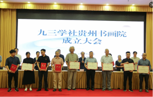 为庆祝中华人民共和国成立75周年,深入学习贯彻习近平文化思想,进一步团结并凝聚社内书画人才,继承弘扬中国传统文化并营造社内文化氛围。9月28日,九三学社贵州省委举行九三学社贵州书画院成立大会,九三学社贵州省委主委杨同光出席大会并讲话,九三学社中央书画院发来贺信,对九三学社贵州书画院的成立表示热烈祝贺。伟德官网教师、九三学社社员李洁教授应邀参加成立大会,并受聘为九三学社贵州书画院副院长。