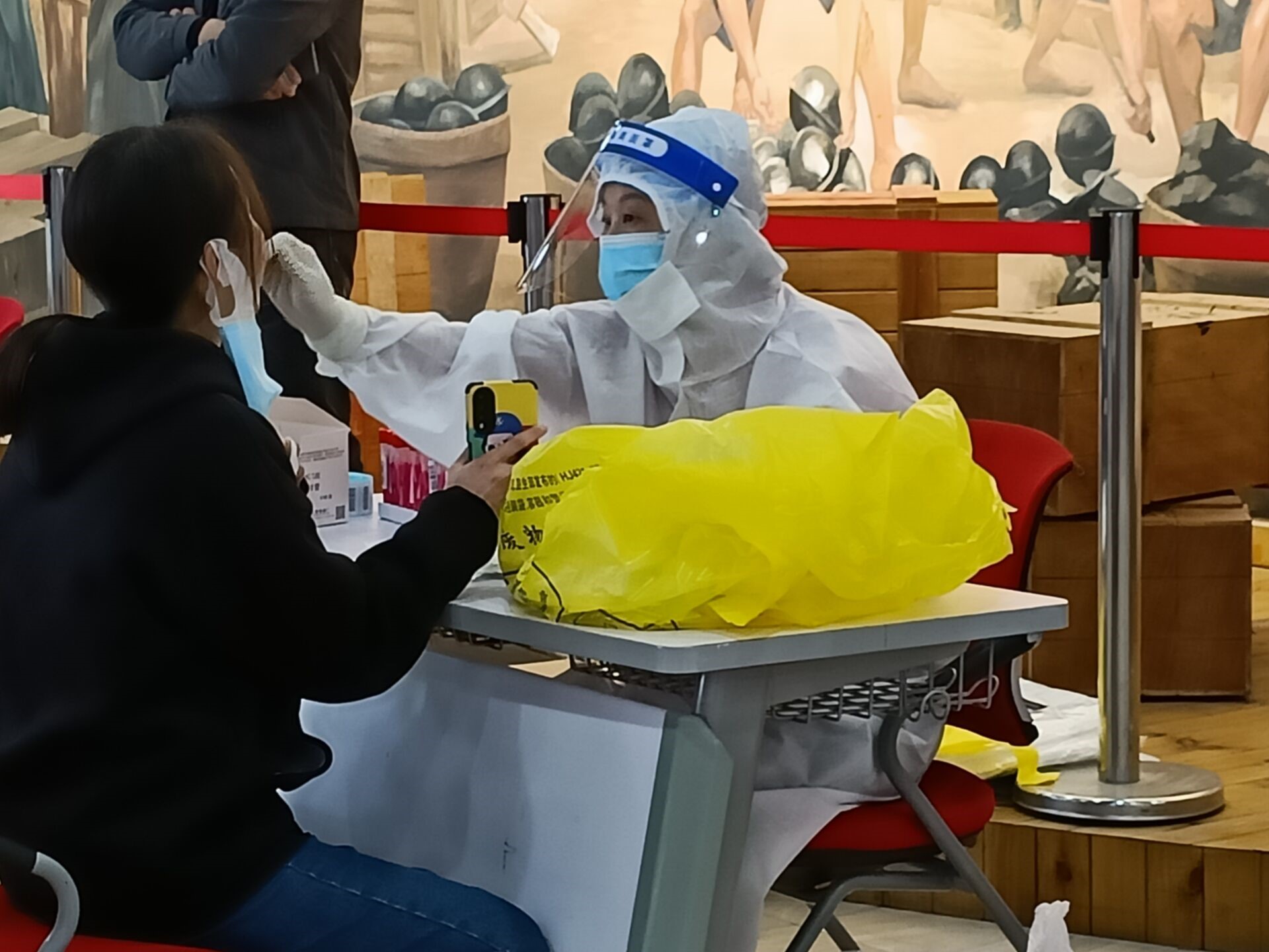 在核酸采集现场,医务人员身着防护服,反复进行试管贴签、消毒洗手、采集咽拭子、现场采样装管等规范操作,耐心引导受检师生按照核酸检测要求配合完成每项流程。检测完毕,各班主任引导学生立即返回班级。