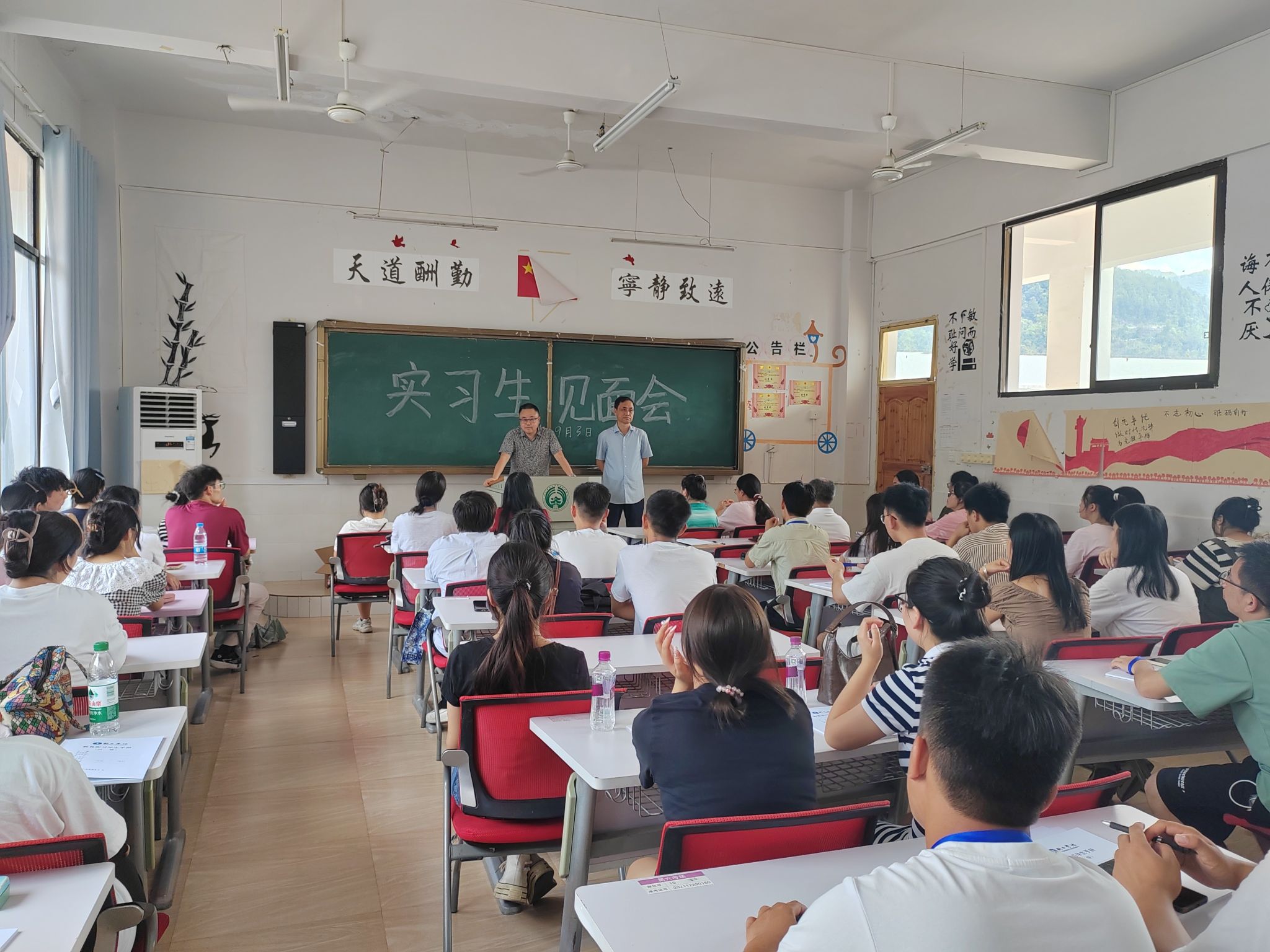 实习指导组组长郑刚对全体实习学生做了岗前培训,从师德养成、学科教学、班级管理、教育研究四个方面重点解读了本次实习任务,他在讲话中强调,师德养成是当好老师的核心、第一标准、第一要求,要深入贯彻党的教育方针,要在整个实习期间通过看、听、讲中逐渐养成良好师德。学科教育是当老师的主要内容,要学会备课、上课、评课、批改,在备课中精准抓住内容要素,在上课中注重思维、能力和语言,在评课中发现优点和不足,在批改中掌握易错点和难点。班级管理是学校管理的重要组成部分,与教育教学相辅相成,要通过参与班级管理提高自身计划、组织、协调、控制等能力。教育研究是提升教育教学质量的关键,要在参与教育研究中总结经验,从而不断提高学科理论水平和实践能力。
