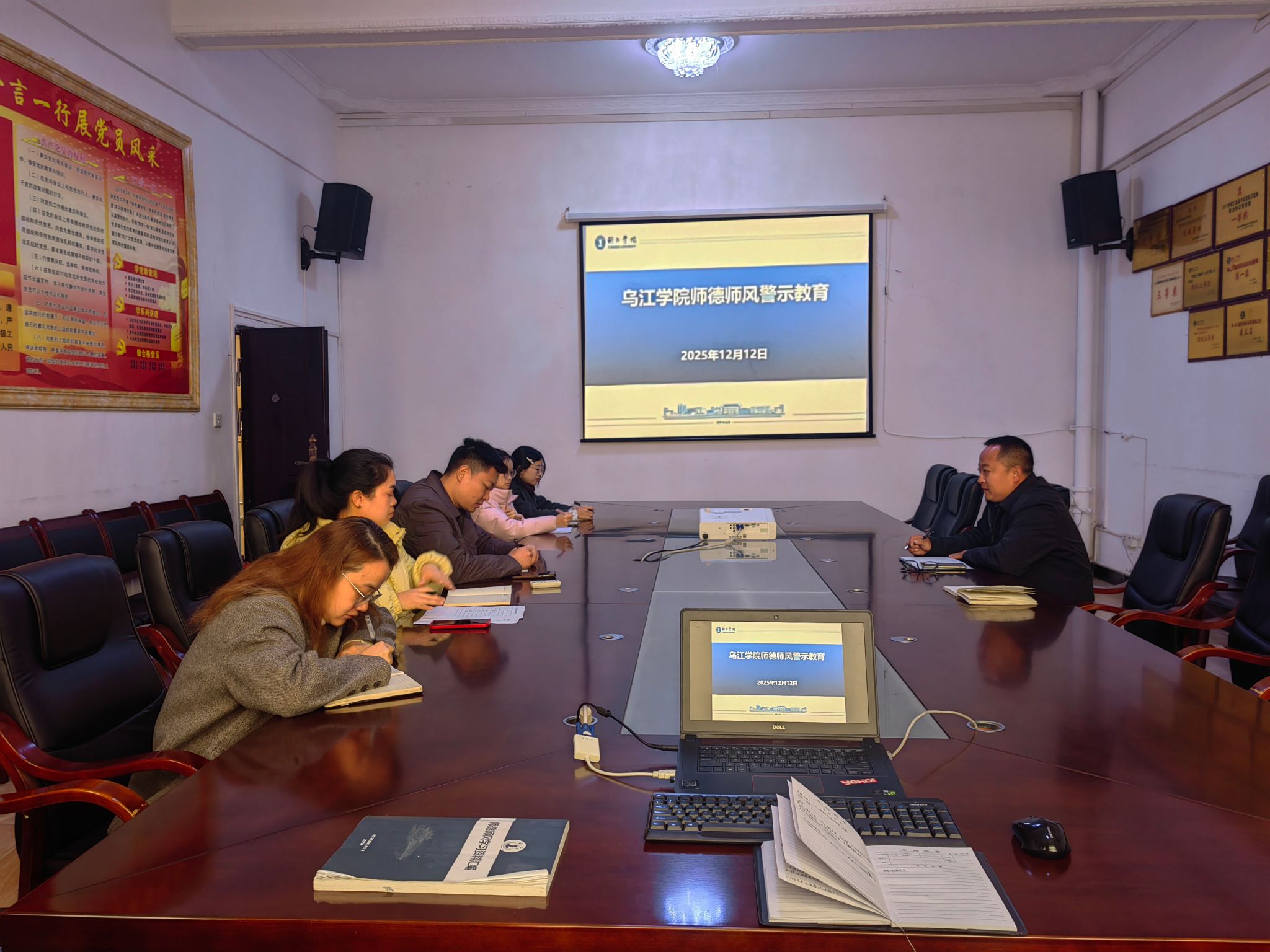 2025年12月12日,乌江学院在学院三楼会议室组织召开师德师风警示教育专题会议。会议由乌江学院副院长李念主持,全体教职工参加。