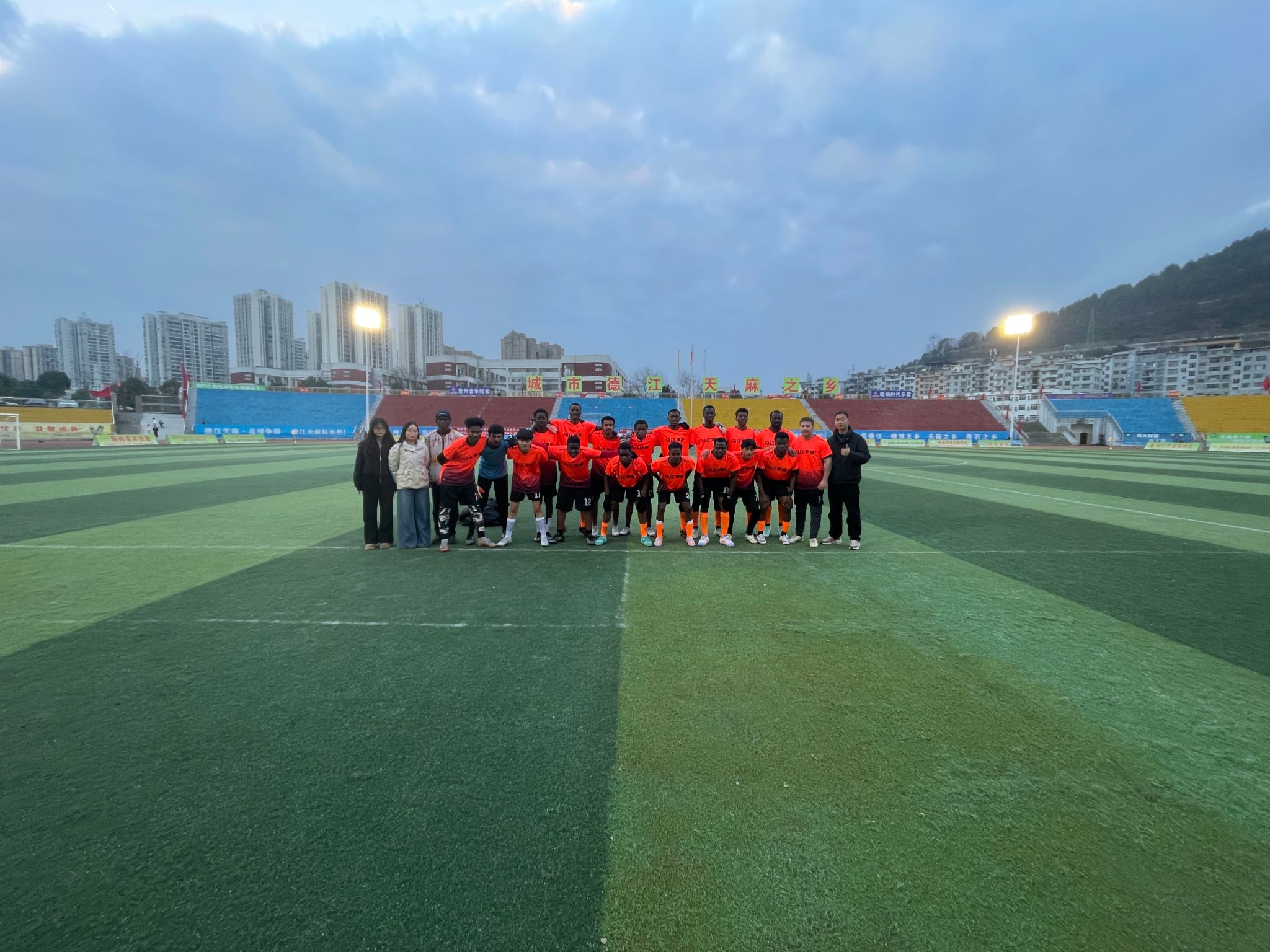 为丰富留学生课余生活,搭建中外文化交流桥梁,2月2日,bv伟德国际1946乌江学院组织20名留学生代表参与德江县第十一届“迎春杯”DY足球赛。来自尼日利亚、苏丹、索马里、老挝、加蓬等10个国家的学子们,以足球为媒,在绿茵场上与德江足球爱好者同场竞技,展现青春活力与国际友谊。