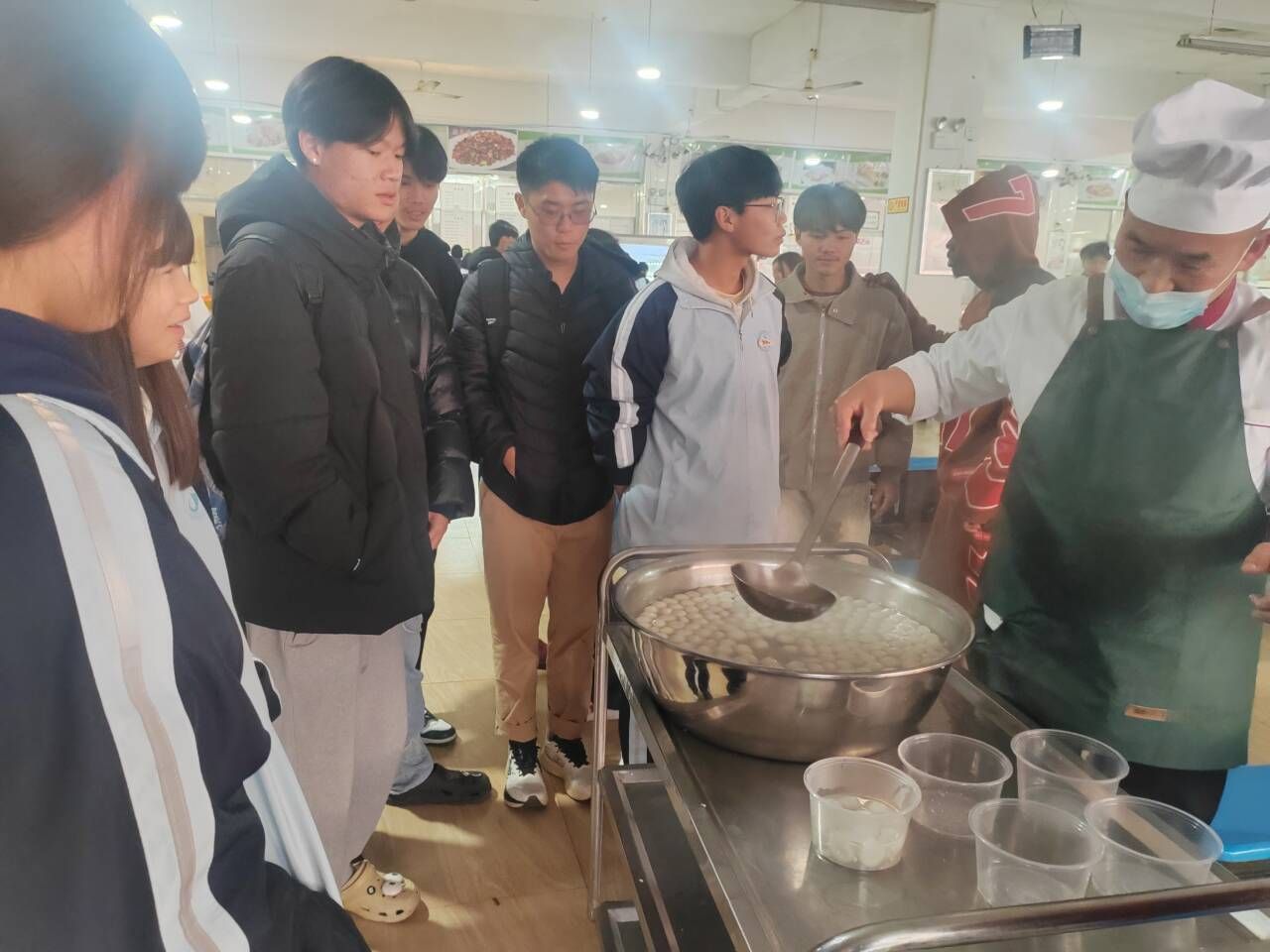 为使中外学生能够感受元宵佳节的氛围,乌江学院、中职学校合与校园餐饮服务团队携手,精心筹备了元宵佳节暖心活动。食堂师傅们很早就开始忙碌,采购了数十箱汤圆,并在食堂的大锅前精心烹煮。随着热气不断升腾,软糯香甜的汤圆陆续出锅,并免费提供给每一位中外师生。