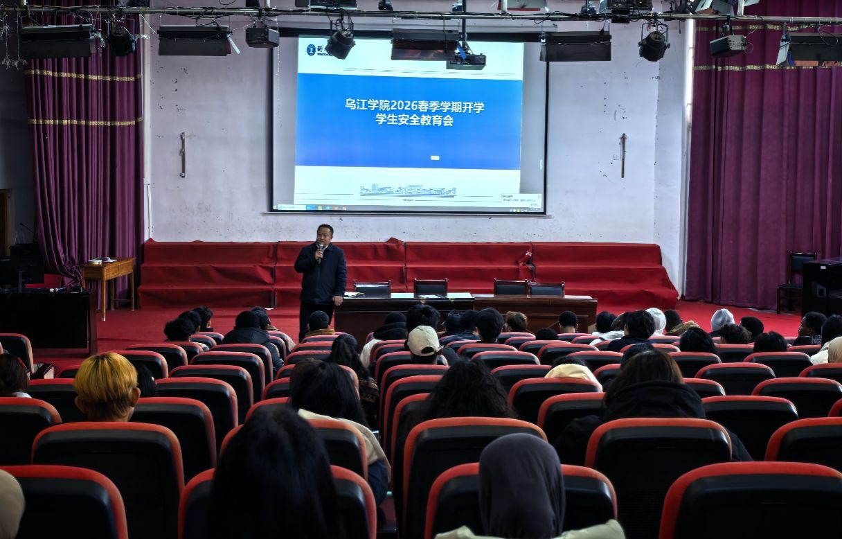 为切实做好新学期学生安全教育工作,筑牢校园安全防线,引导学生以良好状态投入学习生活,乌江学院于2026年3月3日下午,在院大礼堂召开2026年春季学期开学学生安全教育会。乌江学院副院长(主持工作)李念主持会议,全体在校留学生参加会议。