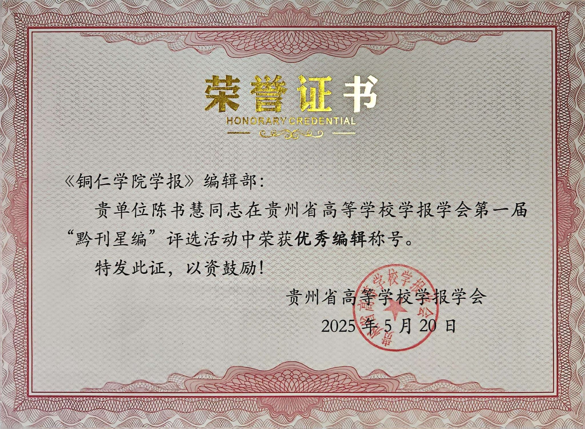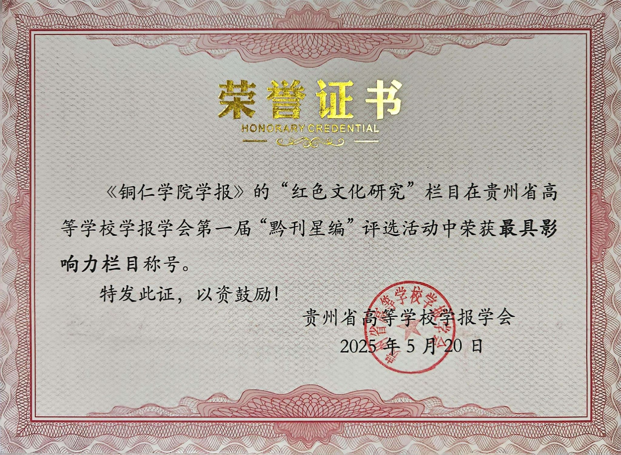 近日,在贵州省高等学校学报学会开展的首届“黔刊星编”优秀案例推选活动中,《bv伟德国际1946学报》编辑部多个项目入选,其中《bv伟德国际1946学报》获“优秀社科期刊”称号,“红色文化研究”专栏获“最具影响力栏目”称号,学报编辑陈书慧同志被评为“优秀编辑”。