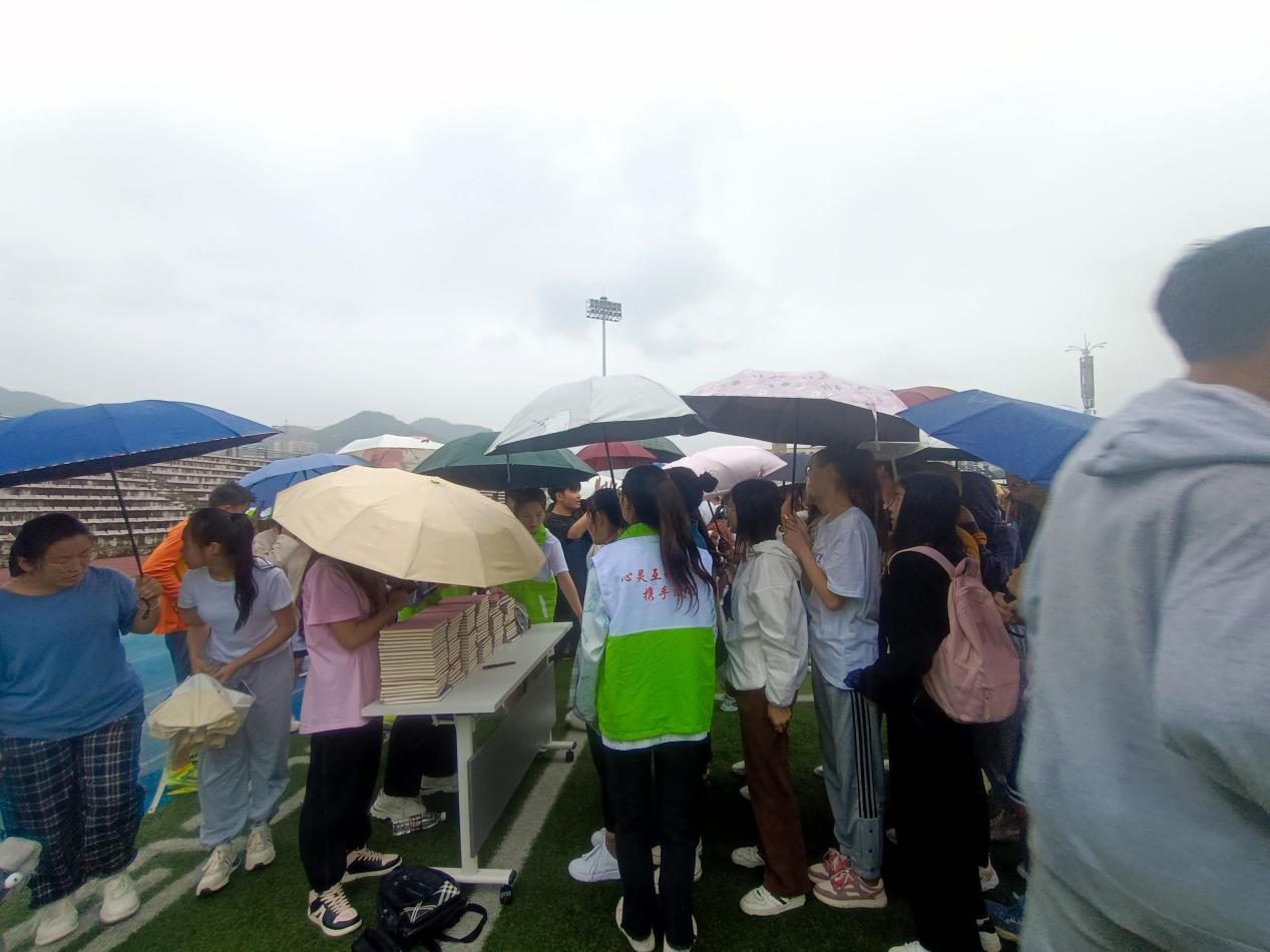 第三个环节是“解人结” ,在这个环节中,每个小组都将尽全力的打乱自己的队伍,不让其他队伍来解题的同学有下手的地方,这是一场智力的较量,每个人都在思考应该如何把这个“人结”缠好,每个人都在绞尽脑汁地解开其他组缠的“人结”,在战况焦灼时,突然下起了雨,这雨也似乎没有浇灭同学们零星半点的热情。没有任何一个队伍选择放弃,每个人都坚持到了最后一刻。