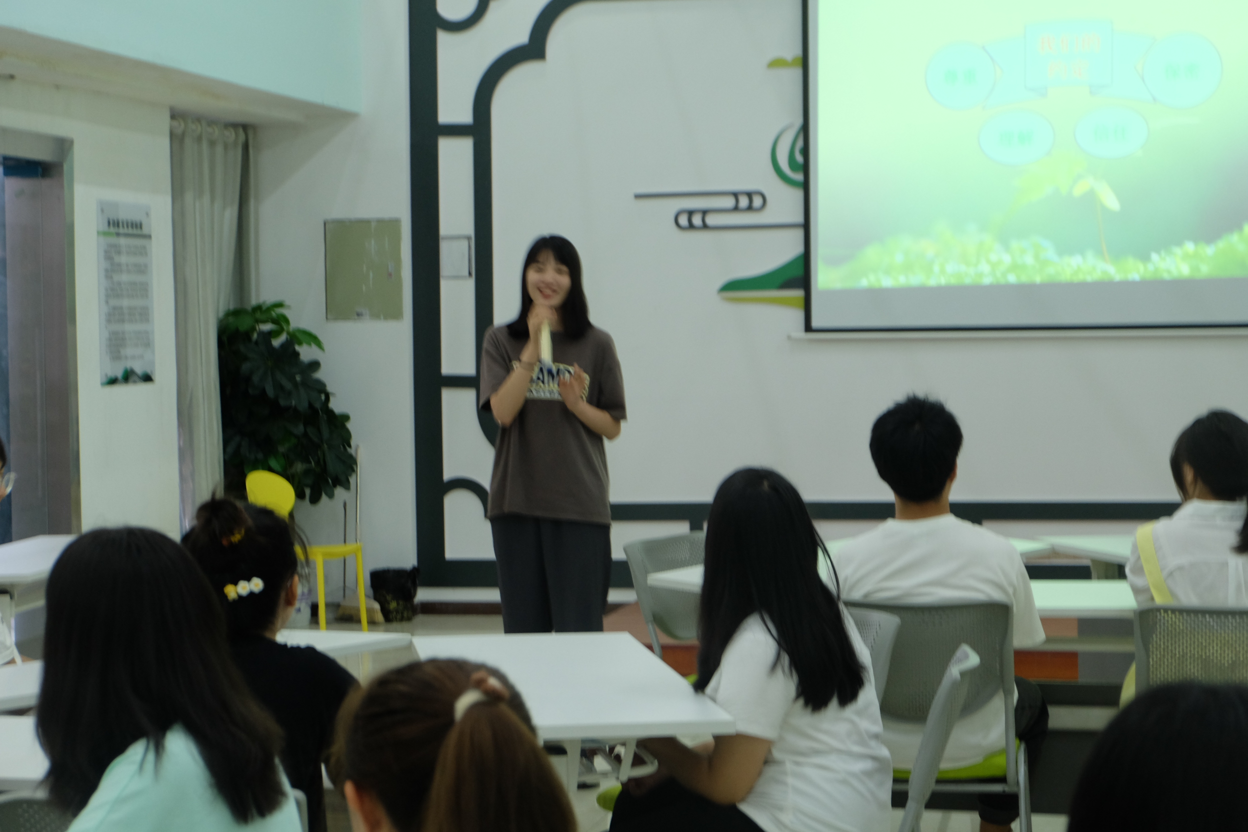 活动伊始,主持人开场便向大家抛出了一个灵魂性的提问,“说到烦恼,大家想的是什么?”一开始大家都有一些腼腆,不敢起来回答问题,但经过冯柳丹同学温馨的气氛调动下,逐渐有几个人起来回答。有同学回答说第一反应想到了很火的电影:《夏洛特烦恼》,又有同学说想到的是自己每每站起来回答问题都会不由自主的手抖。