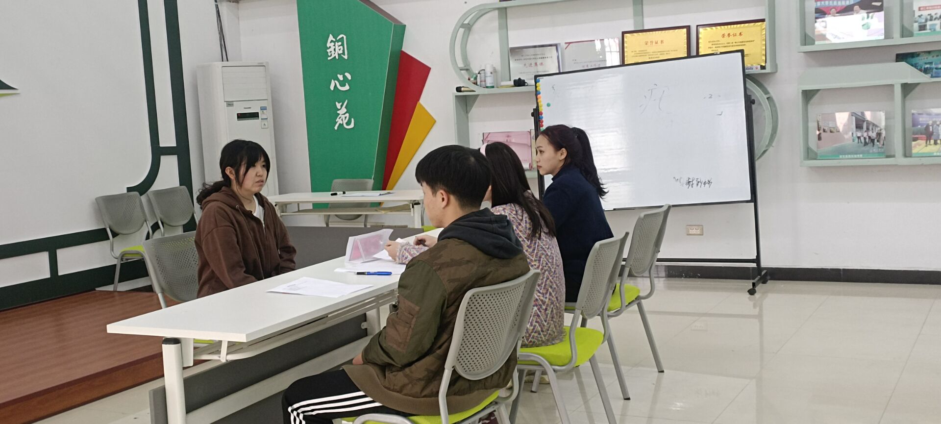 面试前我们工作人员早早做好了各个部门的面试场地的准备,以一个完美的状态迎接我们的每一个面试者。同学们陆续到达后,在工作人员的引导下有条不紊的完成相关信息的填写和排队候场。