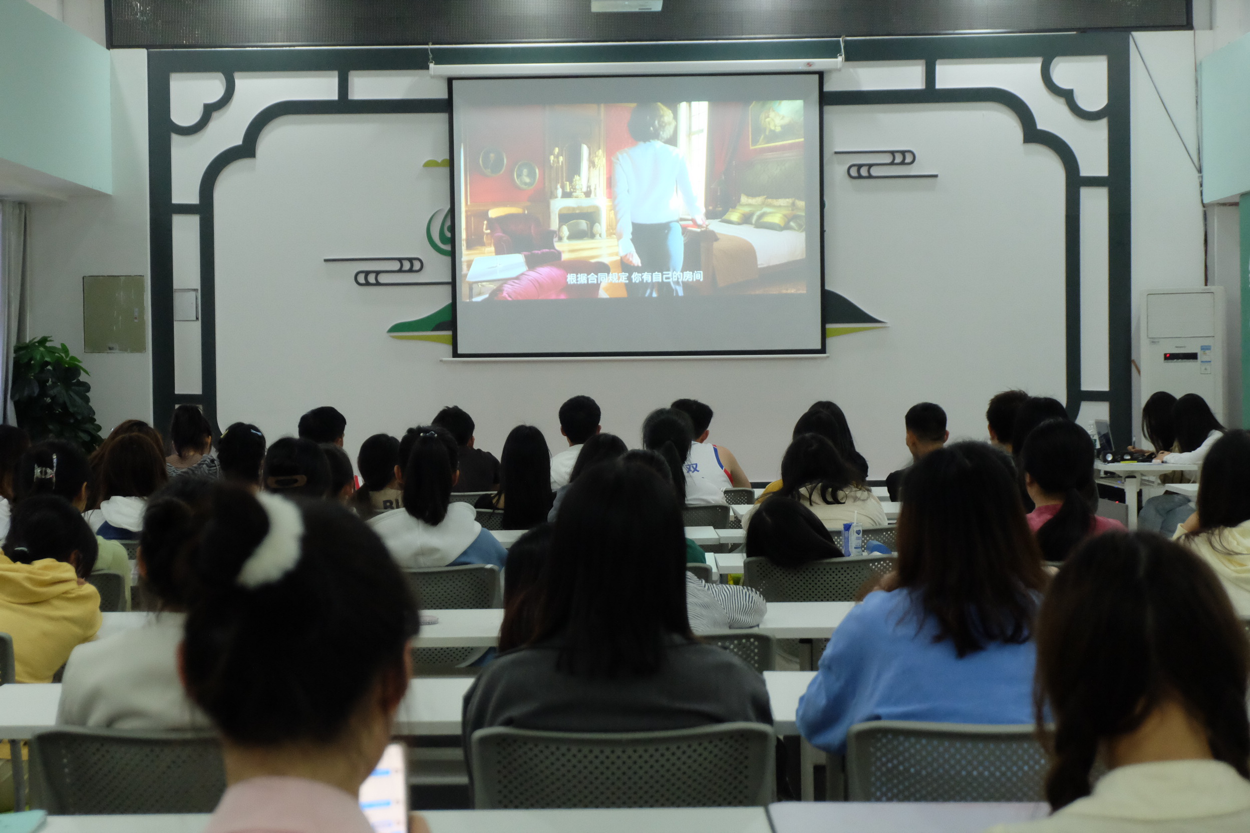 活动开始前,主持人向在座的同学们提问“每个人仰望而不可接近的部分是什么?”,然后同学们纷纷表达了自己的观点。之后主持人主要以影片主人公触不可及的心理障碍、身体缺陷分别是什么?如何与帮佣建立的真挚友情?两个问题巧妙地引出了本期的活动主题,让各位同学带着这两个问题来欣赏这部电影。在主持人的引导下,现场的每位同学不断融入其中。