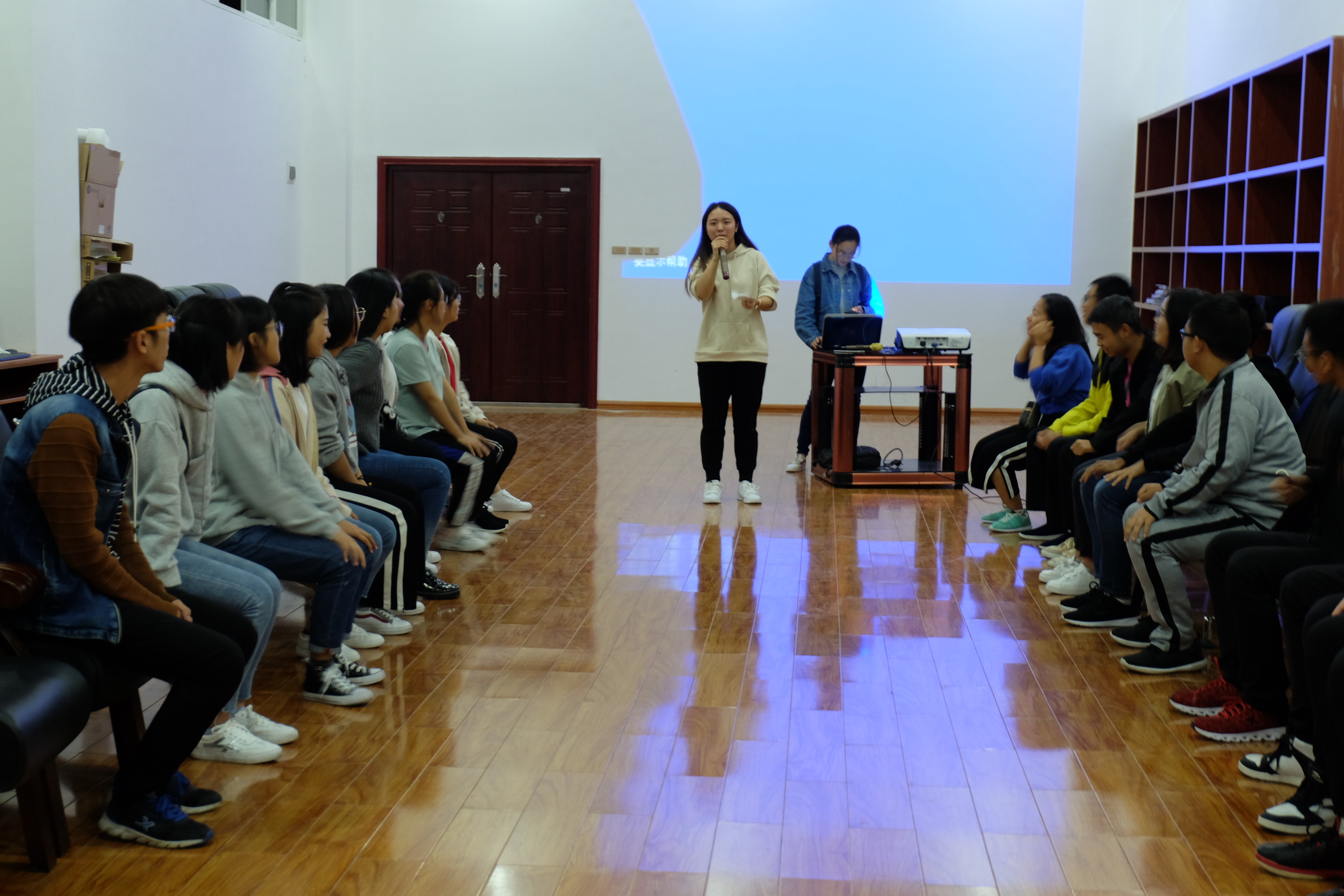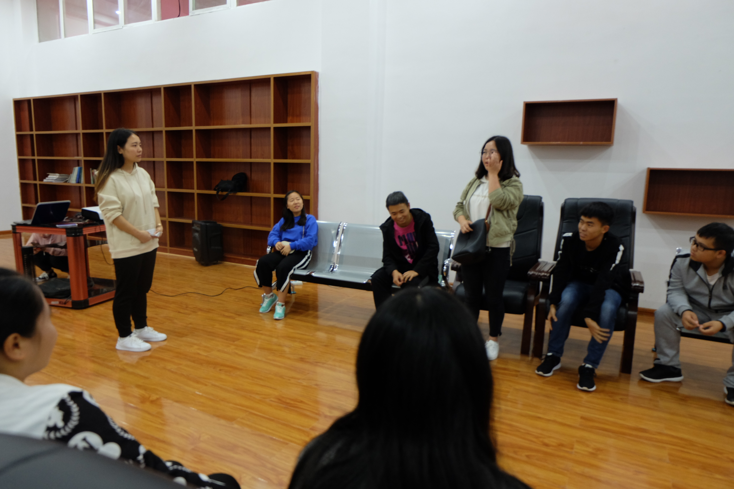 首先,主持人罗仁娜采用有趣而生动的方式让来自不同学院不同年级不同专业的同学相互有了初步的认识,为整个活动会场奠定了轻松而有趣的气氛。接着,主持人以数字玩游戏的方式,让每一位同学都积极参与其中,现场欢声笑语。主持人全场都是采取与同学们一对一的方式进行交流,围绕着主题“不忘初心,砥砺前行”,大家纷纷表达了各自的初心。继主持人和大家分享她的心理路程之后,同学们也相继分享了自己的未来规划:有的同学毕业了想当老师,有的想考研,还有当护士的等等。