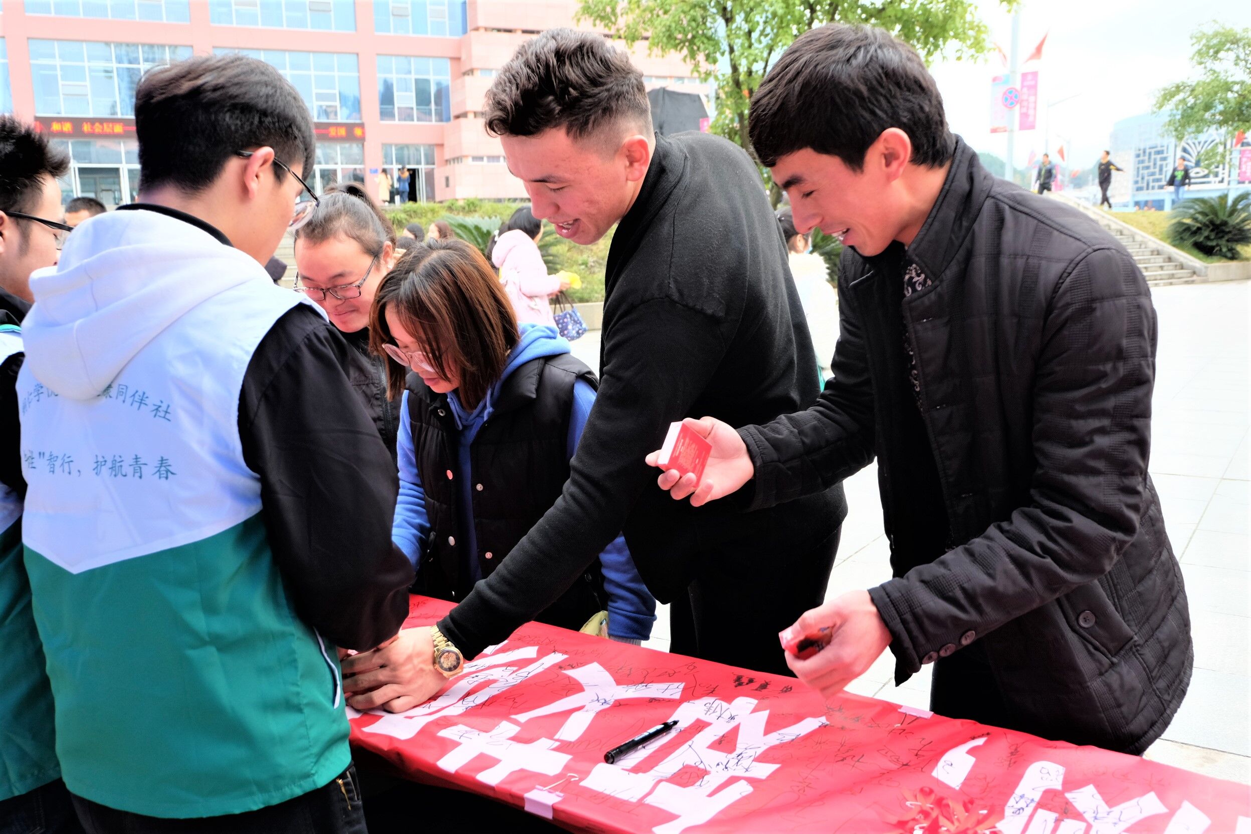 本次出席活动的嘉宾有铜仁市碧江区疾病预防控制中心主任万兆明,校心理健康教育中心专职教师夏冰月,以及碧江区疾病预防控制中心一众医护人员等。活动现场摆放宣传展板,悬挂主题横幅,播放防艾滋病宣传视频等;同时也进行了主动检测、有奖问答、横幅签名、“呼吁拥抱”一系列活动内容。疾病预防控制中心医护人员还为伟德官网学生做HIV病毒检测,同学们都积极参与其中。