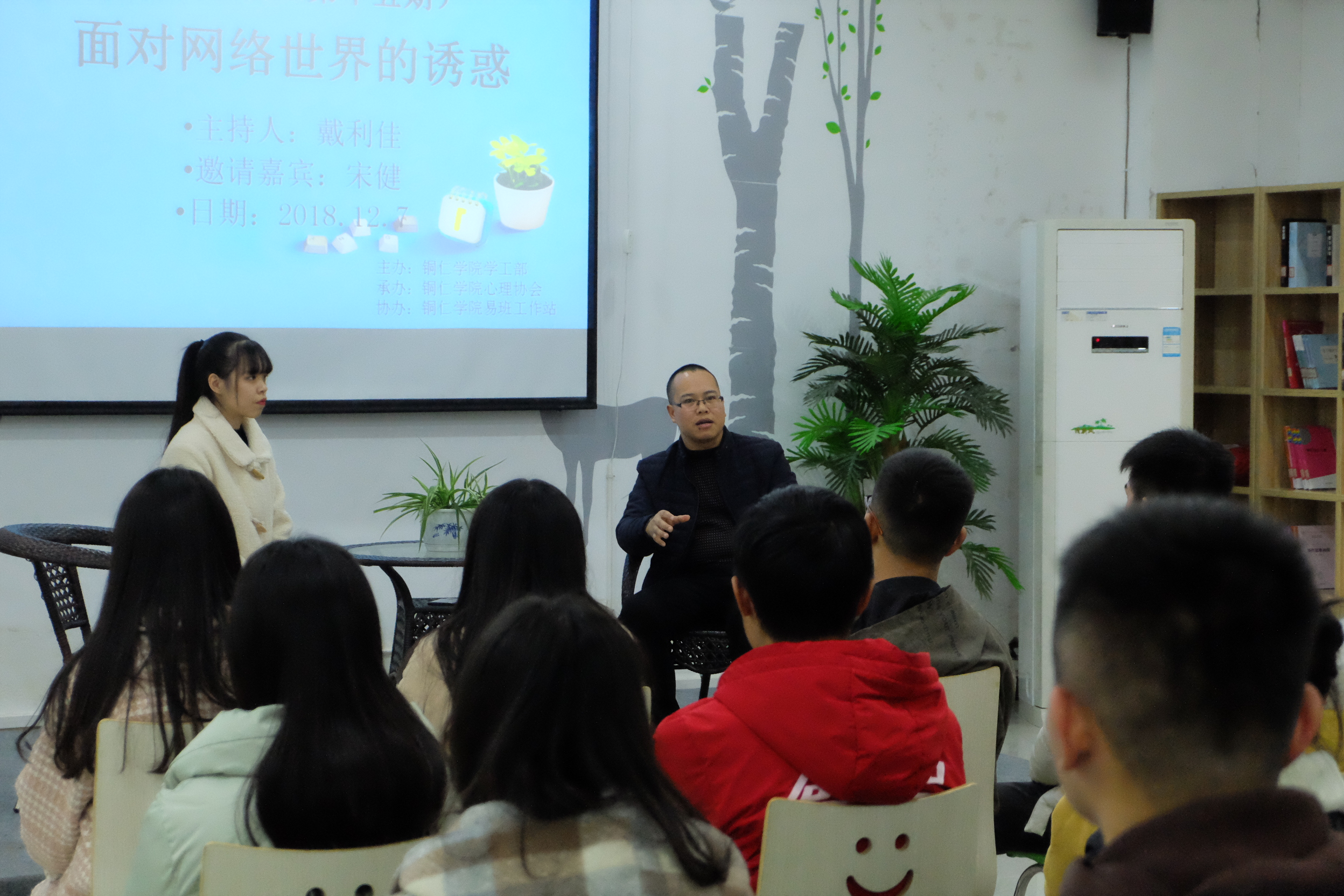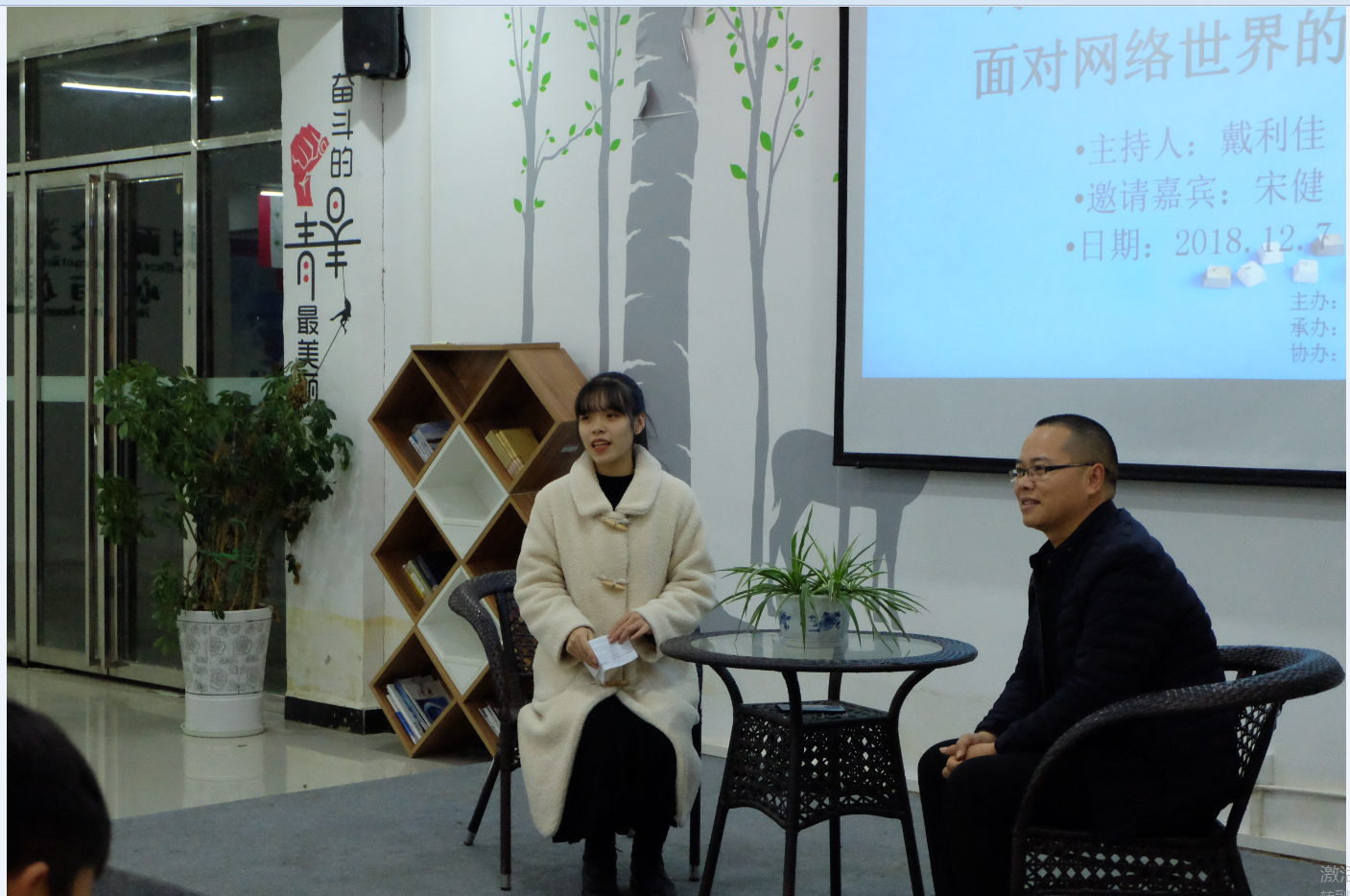 主持人戴利佳、嘉宾宋健老师在活动中