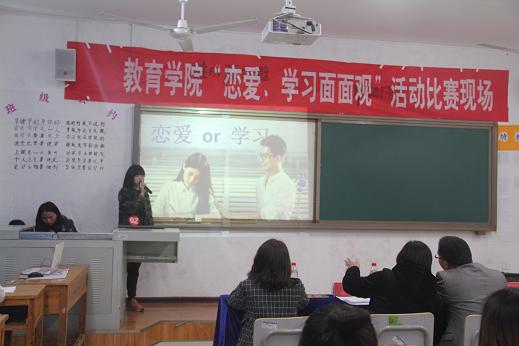 为了解同学们在大学期间的恋爱观与学习观,帮助其树立正确的恋爱观,3月27日下午,伟德官网教育学院在明理楼B408教室举办“恋爱、学习面面观”主题展示比赛。担任此次比赛的评委有校心理健康教育中心主任宋健、该院公共教研室主任于慧慧、心理工作站常务副站长赵梅玲、团总支负责人文乙皓以及该院心理健康部干事王晓红。来自该院各班级的22支队伍参赛,比赛由学生主持。