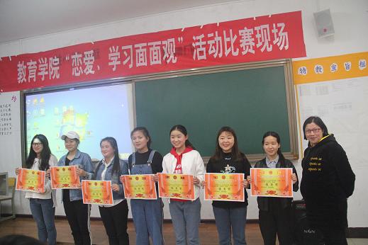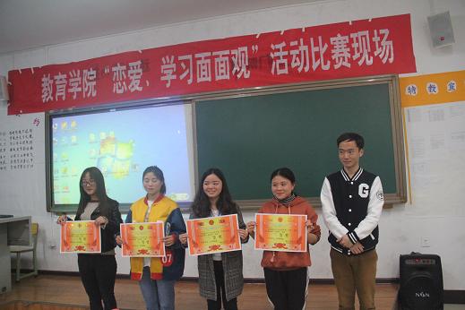 比赛结束后,宋健老师对该活动开展作了点评,他高度肯定了此次活动的意义,并表达了对该院今后在开展此类活动的期待。随后于慧慧老师从恋爱学习心理方面对此次活动进行了总结,并对比赛流程提出了建设性建议。最后,评委老师分别为获奖的个人及集体颁奖。至此,本次活动圆满结束。