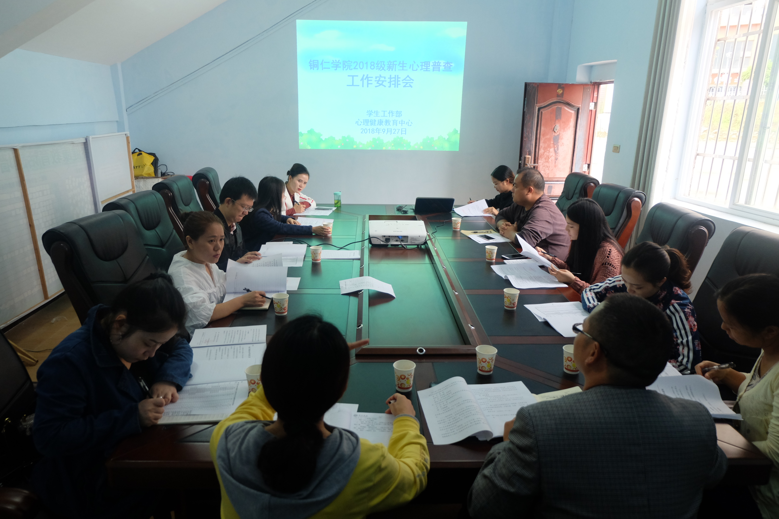 为保证2018级新生心理普查工作的顺利开展,9月27日中午,心理健康教育中心组织召开2018级新生心理普查工作安排会,各学院心理工作站副站长、学生科长参会,校学工部副部长武国丽出席会议并讲话,会议由中心主任宋健主持。
