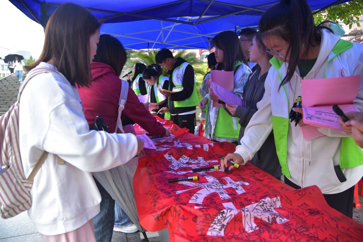 整个活动过程中,同学们都表现得热情高涨,并积极地参与其中,在参与体验快乐的同时,还收获了精美的小礼品。在主题签名环节,积极主动在主题为“共同促进师生心理健康,共同守护世界”的签名横幅上签下自己的姓名;在知识问答环节,同学们不仅能对答如流而且还能积极表达自己对于心理健康问题的想法和观点;在现场采访和心灵寄语环节,同学们畅所欲言,体现了同学们对心理健康的了解和重视。