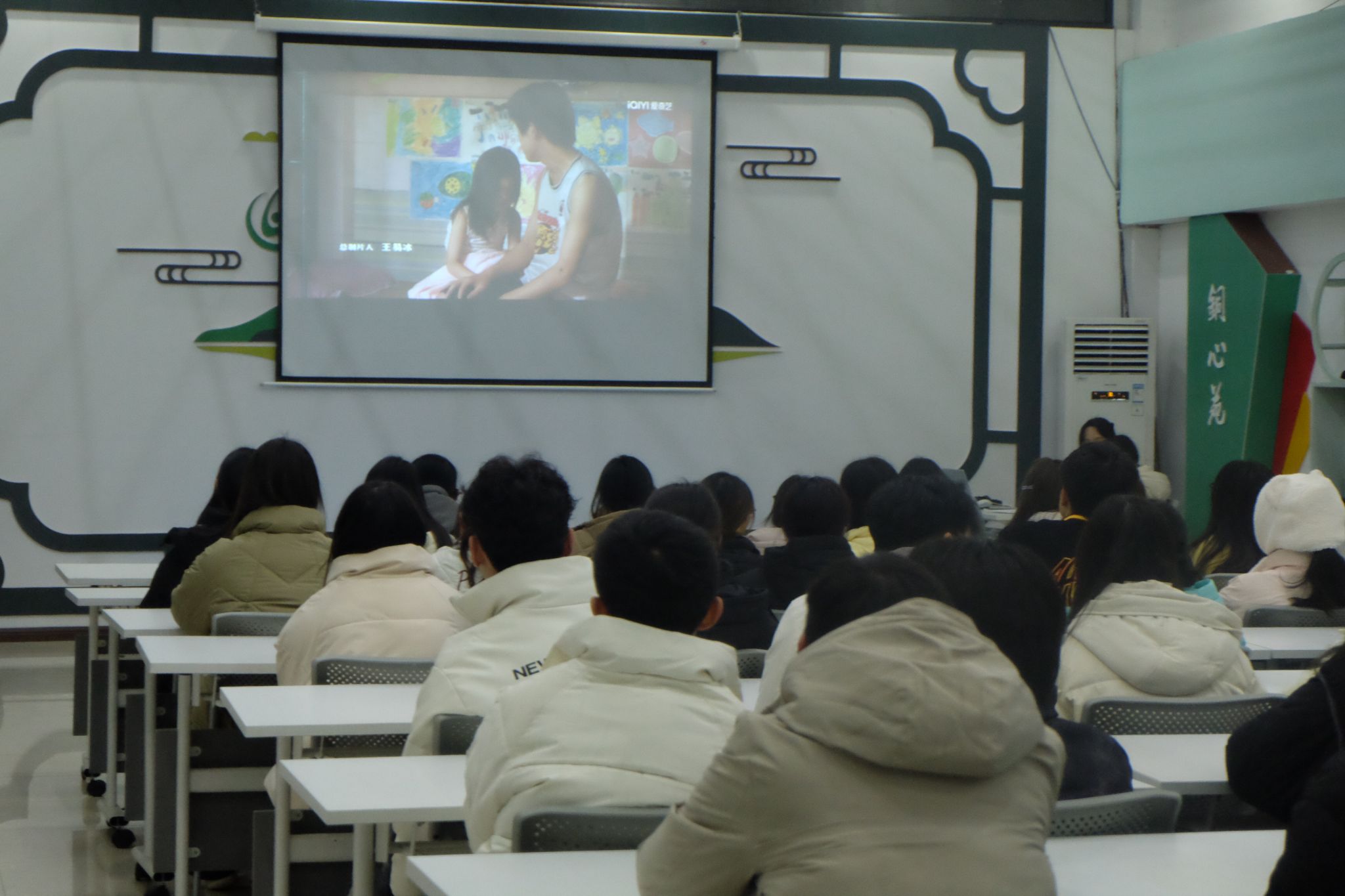 随后,由主持人为同学们播放电影。起初,同学们或许是对剧情发展感到有些困惑,小声地讨论着剧情。可随着剧情高潮的出现,同学们也完全沉浸在故事当中,一边欢笑连连,一边认真地观看电影,认真思考着主持人提出的问题,并且希望找到答案。