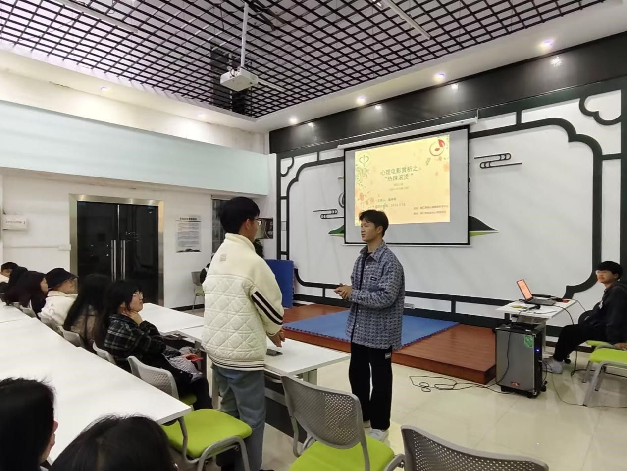 3月15日晚,伟德官网心理健康教育中心在多功能室开展了2023-2024第十期周五心语活动——心理电影赏析之《热辣滚烫》。此次活动由2022级化学工程与工艺班梁坤刚同学主持,共有60名来自不同学院的同学参加。