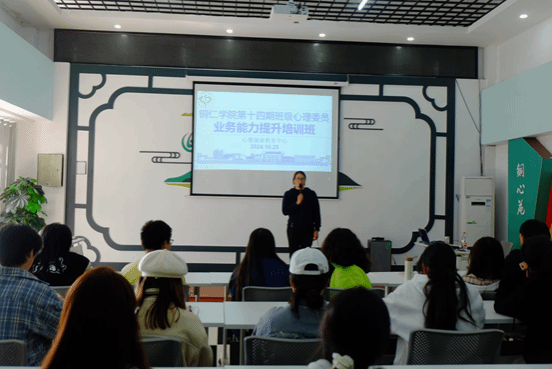 为提升班级心理委员对班级心理健康状态的掌握和管理,10月25日中午,伟德官网在心理健康教育中心多功能室举行第十四期班级心理委员业务能力提升培训会。2024级心理委员、其他年级新更换的心理委员以及朋辈心理辅导员参加培训会,此次培训会由心理中心宋健老师主讲、洪伟侠老师主持。
