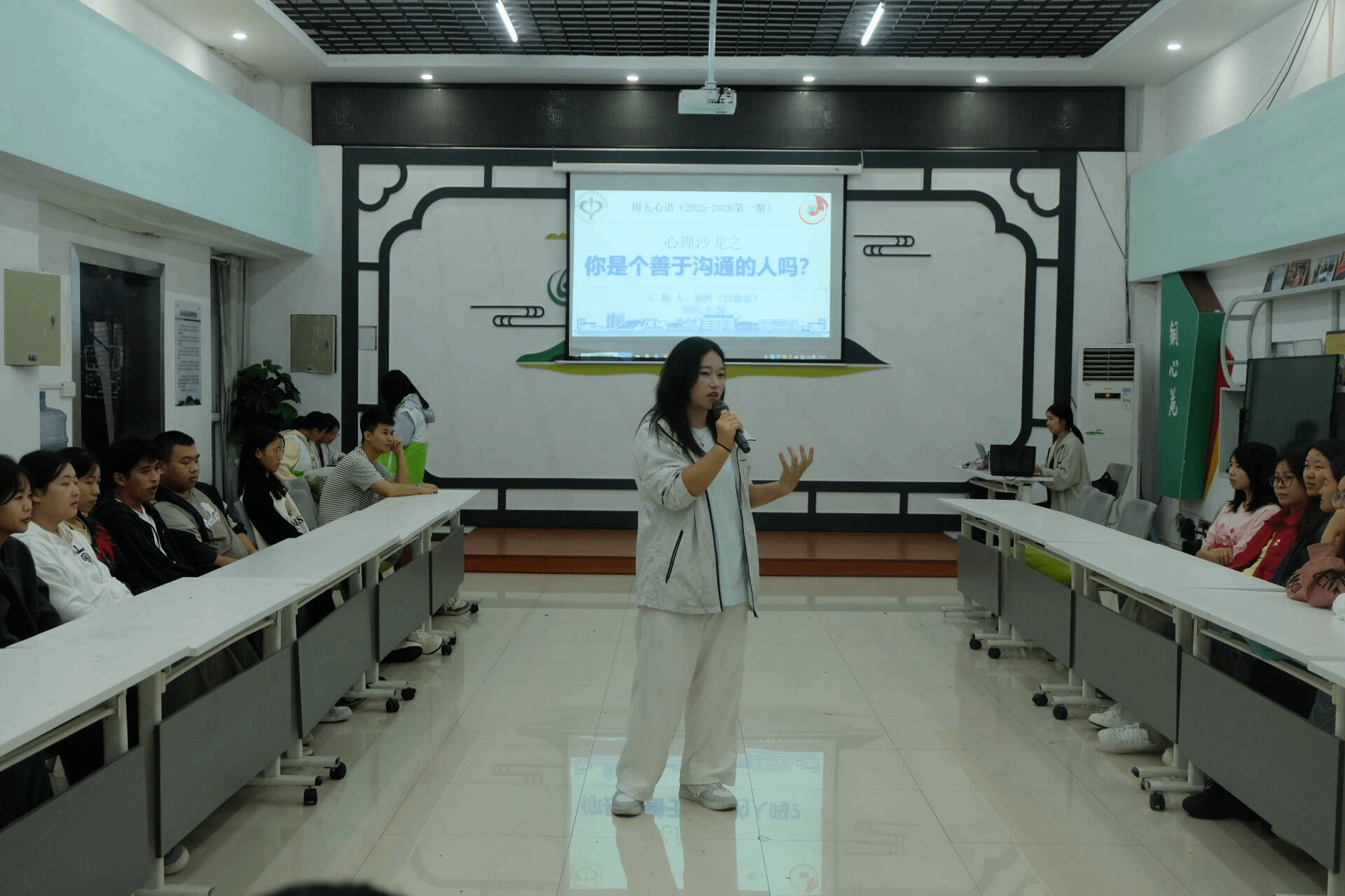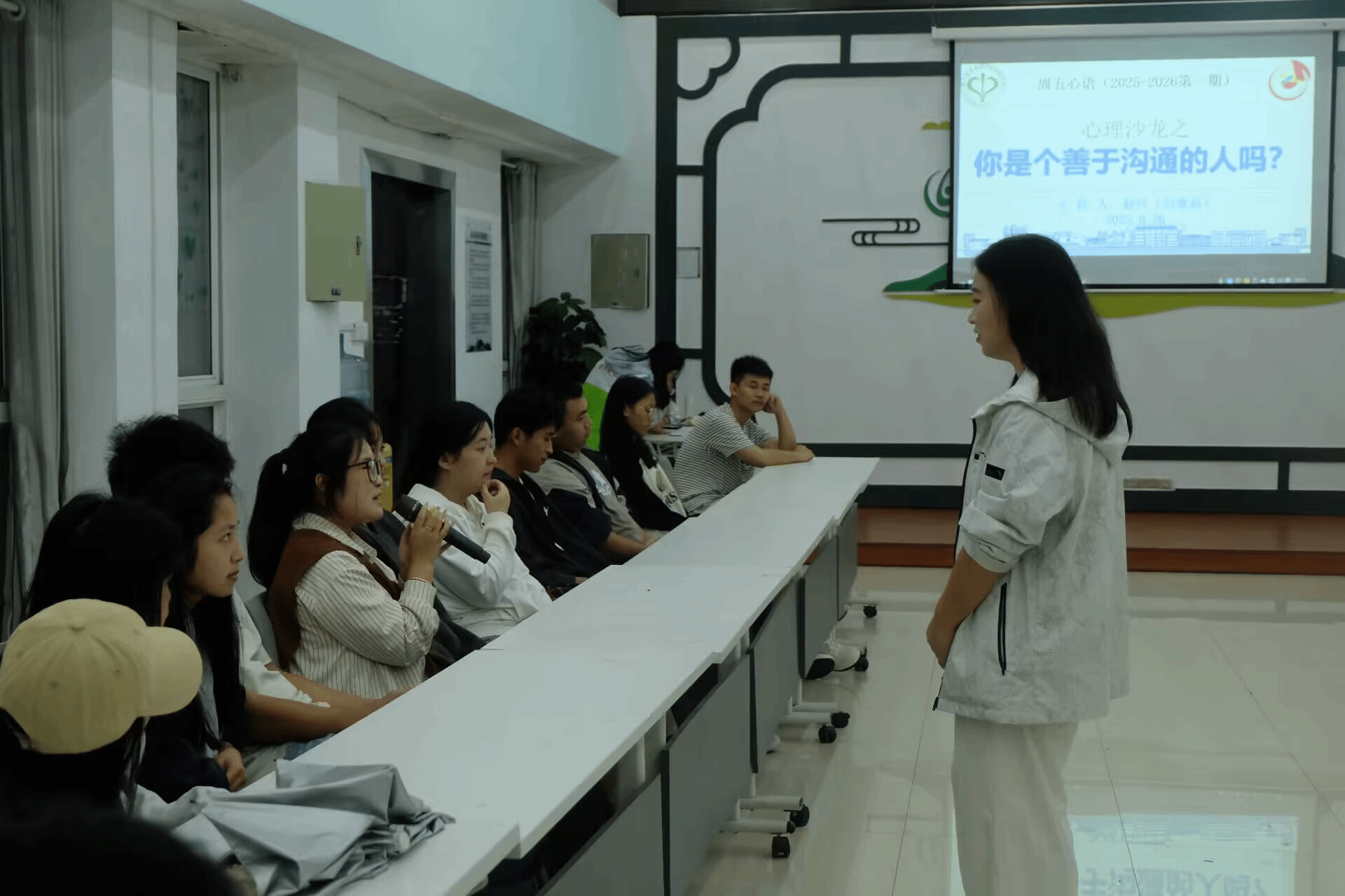 9月26日晚,伟德官网心理健康教育中心在多功能室开展了2025-2026第一期周五心语活动——心理沙龙之“你是个善于沟通的人吗?”。此次活动由2023级食品科学与工程专业赵叶同学主持分享,共有40余名来自不同学院的同学参与。