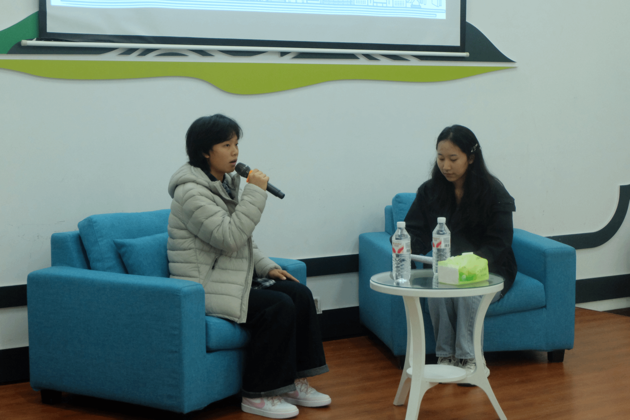 活动伊始,主持人提出“青春成长路上挑战重重,我们该如何突破自我,在大学生活中实现全面成长?”由此引出活动主题。随后,主持人介绍了文静同学在时间管理、情绪调节和人际交往等方面的成长经历。文静同学也结合自己的大学生活,热情分享了如何平衡学业与活动、应对质疑与焦虑,以及学会独处与有效沟通的故事。