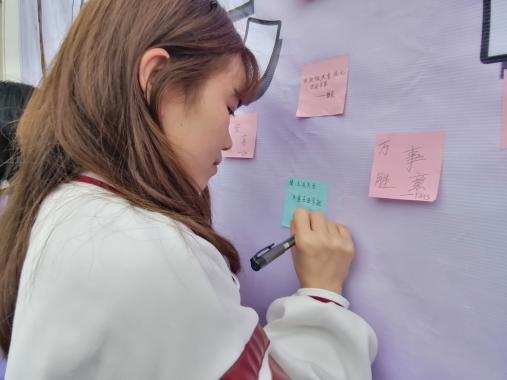 进场后首先进行的是心与心愿环节,参加活动的同学在这里写下自己的名字、对自己的鼓励以及期许。
