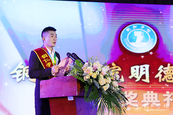 典礼上,获奖代表朱高俊与大家分享了自己入伍当兵和退伍考研的经历。他感言,有一种青春的色彩叫做迷彩绿,有一段闪亮的岁月叫做考研路,很荣幸两个都给自己遇上了。他以自身经历勉励新一代铜院学子努力前行,付诸实践,绝不轻言放弃。