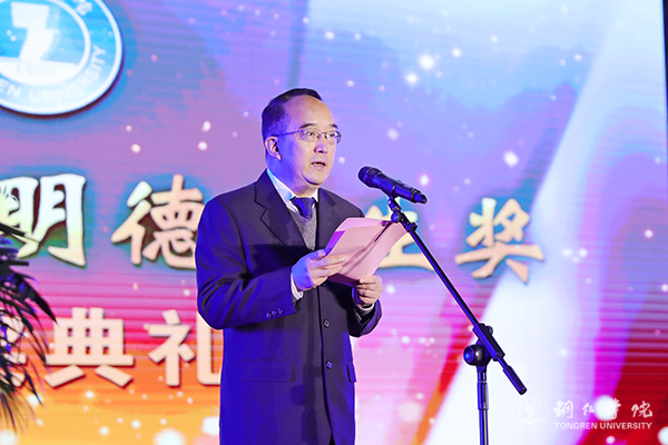 典礼上,代亮宣读了第七届“明德学生奖”表彰文件,并提出了两点希望:一是希望受表彰的个人和团体戒骄戒躁、努力学习,更好的发挥示范引领作用;二是希望全体同学以他们为榜样,刻苦学习、勤于实践、立志成才、追求卓越,全面提升综合素质,努力成为德智体美劳全面发展的社会主义建设者和接班人。