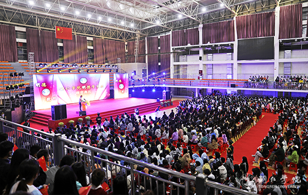 明德之星,熠熠生辉;明德之火,代代相传。10月18日晚,伟德官网第七届“明德学生奖”颁奖典礼在体育馆举行。校党委书记朱洪波、校长侯长林出席典礼并为获奖者颁奖。党委副书记代亮,纪委书记吴先佳,副校长石维、罗静、杨建,党委委员、组织部部长梁正海、宣传部部长叶丹、统战部部长刘德平,以及7位颁奖嘉宾出席典礼。各二级学院领导、学校各职能部门主要负责人,2021级全体新生及新生班主任,各班学生代表,以及明德学生奖获得者参加典礼。典礼由罗静主持。