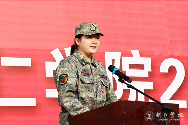 军训学生代表李剑兰发言