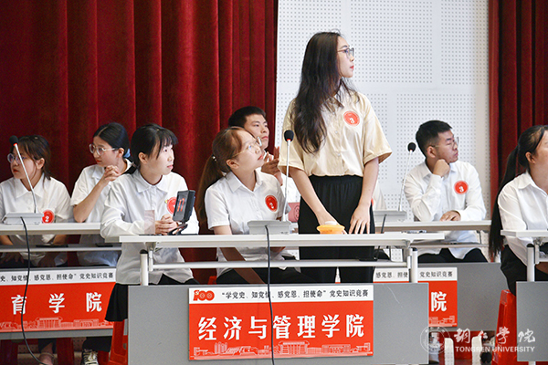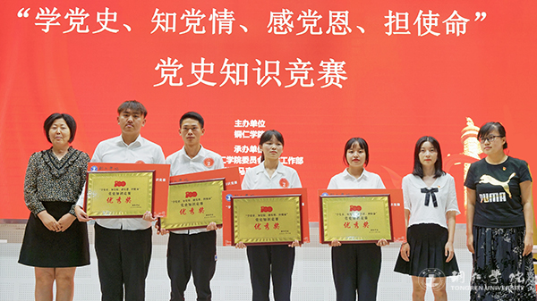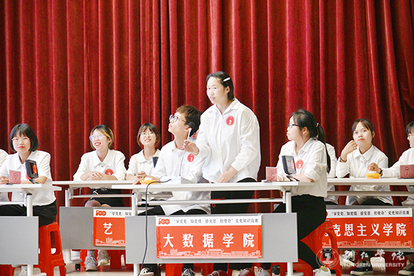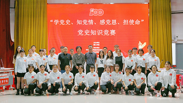 为庆祝中国共产党成立100周年,推进党史学习教育走深走实,引导伟德官网学生学党史、知党情、跟党走,7月9日,伟德官网“学党史 知党情 感党恩 担使命”党史知识竞赛在梵净山人文生态馆举行。校党委委员、党委宣传部部长叶丹,党委学工部部长张钱、副部长武国丽出席活动。马克思主义学院刘坤新博士、赵艳玲教授、迟婕老师担任本次竞赛的仲裁组。来自10个学院的10支队伍参加比赛。