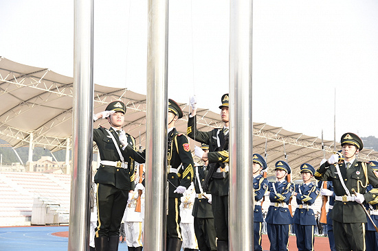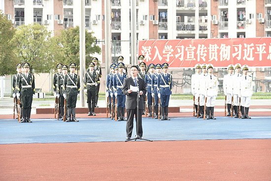 活动开始,在全体师生的注目下,国旗护卫队护送国旗进场,伴着国旗的上升,全体师生怀着对祖国崇高的敬意,奏唱国歌。