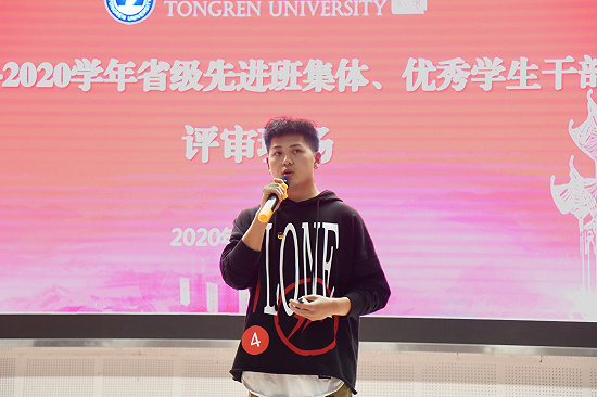来自艺术学院2018级音乐学班的李岳,他谈到在今年疫情期间他积极地参与进了家乡的疫情防控工作,向街坊邻居宣传新冠病毒的严重性以及如何预防疫情的感染,帮助村民解决了许多新冠病毒的疑问,给村里面的老人传播了正确的疫情新闻。当评审老师问到他作为一名学生干部,他为同学们做过些什么事时,他回答到,作为一名学生干部,他把为同学服务作为工作的出发点和落脚点,做到权为学生所用,利为学生所谋。