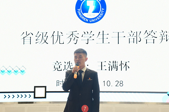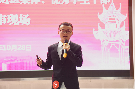 在优秀干部答辩环节,11名参赛者均从个人简历、思想信念、个人荣誉、参加活动、职业规划五个方面进行了答辩。