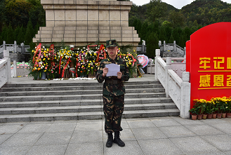 随后,杨洪浩同志作为代表发言。他说,我们现在美好和平的年代,是无数英雄用他们的鲜血换来的,我们要继承先烈们坚定的信念,完成他们的遗志,把新中国建设得更加强大!