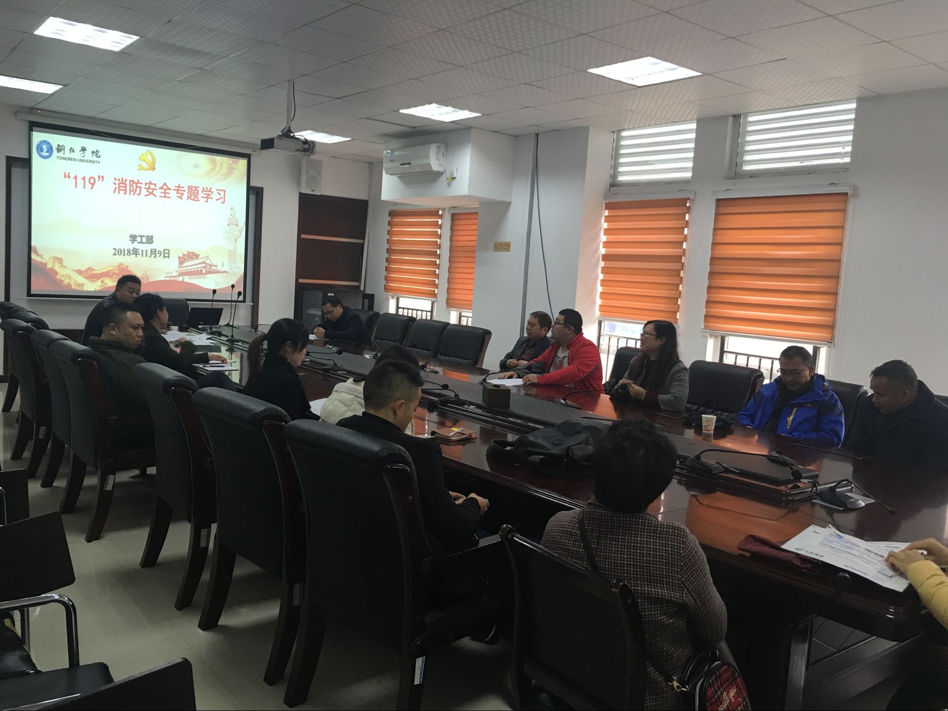 11月9日,学生处在行政楼8222组织学习“119”消防安全专题学习,学工部部长张钱、副部长刘玉康、武国丽,及学工部所有教职工参加学习会议,会议由刘玉康主持。