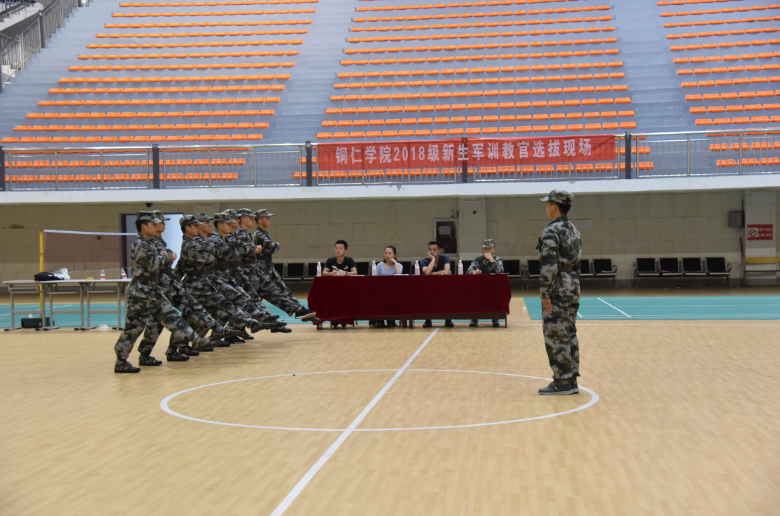本次选拔的主要考核内容是单个军人队列动作(组织指挥、口令下达、指挥员自身动作、以及应对军训突发事情处理方案)。考核项目分为两项,一是单个军人队列动作的“四会教学”,主要包括停止间动作(稍息、跨立与立正,敬礼与礼毕,蹲下与起立,停止间转法,脱帽与戴帽)和行进间动作(齐步行进与立定、跑步行进与立定、正步行进与立定);二是现场面试(学生军训常见及突发事件处理)。在第一项考核中,每位选拔者以自己所在的队伍作为训练对象,声音洪亮,每个人都有自己独特的训练方式,把队伍训练整齐;面试题的内容涉及考察应试者的思想政治觉悟、道德素养、组织纪律性、组织协调能力、语言表达能力、突发事件处置能力等各方面的素质。大部分同学在面试过程中,落落大方,从容不迫,大胆地阐述自己的观点和处置突发事件的思路。