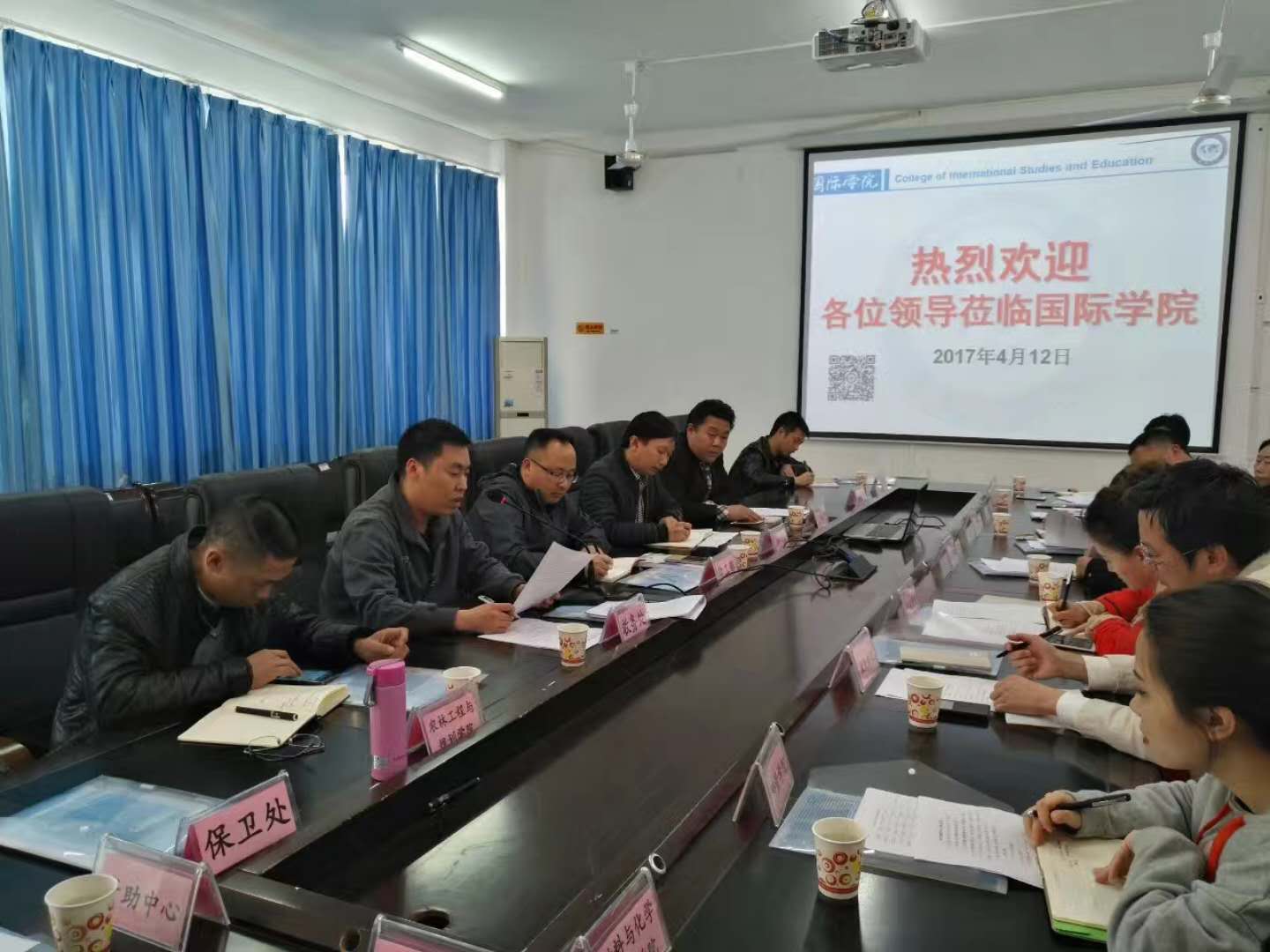 4月12日下午,bv伟德国际1946学工部在国际学院召开2017年学生工作会议,学习《普通高等学校管理规定》(教育部令第41号),学工部部长张钱、副部长刘玉康及各学院院分管学生工作院长、副院长、学生科科长参加会议,会议由学工部部长张钱主持.