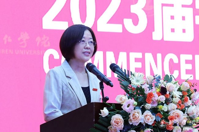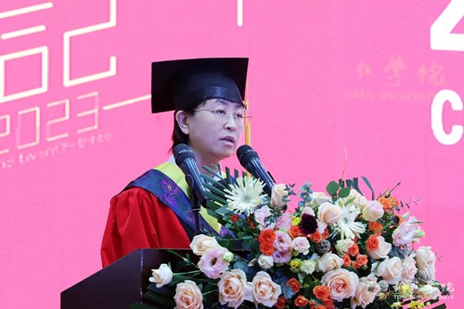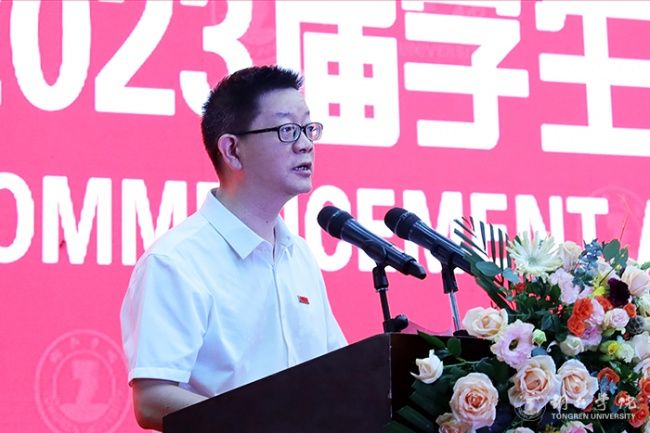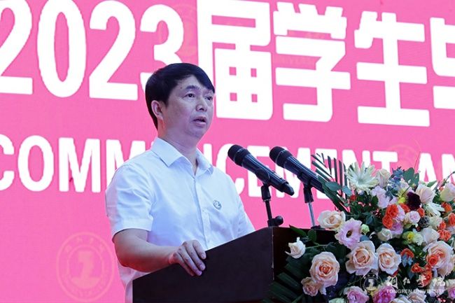 毕业典礼上,朱洪波作了题为《潮起海天阔 扬帆正当时》的讲话。他代表学校向同学们表示热烈祝贺,为同学们即将踏上新的征途送上美好祝福,同时,向付出了辛苦努力的全体教职员工表示诚挚敬意。他说,同学们在bv伟德国际1946求学生活的四年里,秉持“明德·致用”的校训精神,度过了人生最美好、最宝贵、最值得留恋的青春岁月;弘扬“尚贤尚能”“善思善行”的校风学风,淬炼成长,修身治学,坚毅前行,与母校共成长同发展;与伟大祖国和伟大时代同向同行,体现了新时代大学生的精神风貌。他提出了三点期盼,与同学们共勉。一是要树牢理想信念,把准人生航向。同学们要牢固树立马克思主义信仰、共产主义和中国特色社会主义的信念,把自身的成长融入国家社会进步的历史洪流之中。二是要胸怀远大志向,勇担历史使命。同学们要胸怀为中华民族伟大复兴建功立业的远大志向,培育优秀品质,练就过硬本领,为国家富强、民族振兴贡献力量。三是要坚持终身学习,做到学以致用。同学们要树立终身学习理念,永远保持昂扬向上的学习热情,使自己的思维视野、思想观念、认识水平跟上时代发展步伐。他希望同学们要以激扬青春的豪情、以舍我其谁的担当,以梦为马,不负青春,不负韶华,在波澜壮阔的时代画卷中奏响澎湃的青春之歌,在以中国式现代化推动中华民族伟大复兴的伟大征程上建功立业。