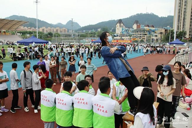 活动现场,所有活动项目同时全面进行。展示区,师生们自由参观本届“5·25心理健康活动月”系列活动成果。竞赛区,各二级学院代表队对“高压电网”“同心圆”“小火车”“风火轮”四项心理健康趣味活动展开激烈角逐,队员们互相鼓励,并肩作战,加油声、口号声在足球场上空久久回荡。互动区,参与类活动“主题签名”“心语心愿”,体验类活动“珠行万里”“同舟共济”,挑战类活动“齐心协力”“信任背摔”,都深受同学们的喜欢,大家积极参与,并通过参加活动集章领到了自己喜爱的奖品。