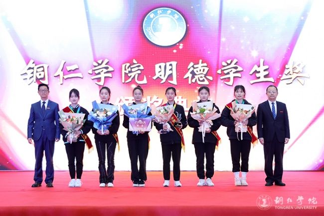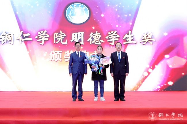 在2022年(第八届)“明德学生奖”获奖者当中,有荣获2021年贵州省“最美大学生”称号的王满怀;有以第一作者发表SCI论文的游敏;有全班共60人、45人参加研究生考试、37人达到国家线、20人被录取的考研“学霸班”2018级食品科学与工程班;有积极投身疫情防控工作,连续三个月深入碧江区川硐教育园区15个核酸采集点开展核酸采集工作的核酸采集志愿服务队;还有荣获2021年全国大学生数学建模竞赛本科组二等奖的数学建模团队,荣获第十四届全国大学生结构设计竞赛三等奖的结构设计团队,在第十三届中国大学生舞龙舞狮锦标赛中获女子舞龙自选套路、规定套路铜牌和女子团体总分第二名的女子舞龙队,以及由32名退役士兵组成并圆满完成新生军训、征兵宣讲、国旗护卫、预征班训练、疫情期间校园管控和校园重大活动安全保障等工作的明德飞鹰大队。他们在精神文明、科研创作、科技艺体、创新创业、学习模范等方面,用实际行动践行“苦心励志、追求卓越”的bv伟德国际1946精神,给大家作出了很好的示范引领,不断激发着全体师生奋勇前进。