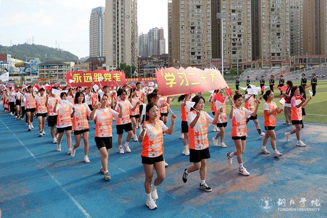 在激昂的音乐中,伴随着主持人振奋人心的解说,国旗、校旗、会旗方阵,二级学院方阵,以及教师代表方阵、裁判员方阵携着饱满的精神,喊着嘹亮的口号,迈着整齐的步伐,井然有序、昂首阔步地走过主席台。11个二级学院的学生演员身着极具特色的服饰,为观众带来了汉服舞、民族舞、啦啦操、武术表演等彰显专业特色的精彩节目,表演中尽显伟德官网师生朝气蓬勃的精神风貌。
