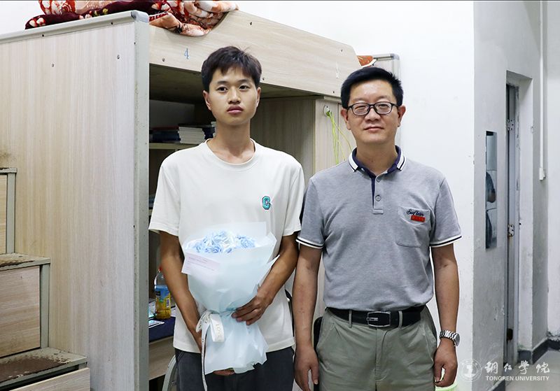 在至义苑材料与化学工程学院的新生宿舍里,还发生了一件巧合而有趣的事。朱洪波书记拿着鲜花,递给了9月4日生日的一名男生,并热情交谈。“你从哪里来?欢迎来到bv伟德国际1946,同时也祝你生日快乐!”朱洪波询问到。“谢谢老师,我来自贵州安龙!”该学生回答。“真巧,我也是贵州安龙的,没想到这么巧合,在这里碰到老乡了,希望你好好学习。”朱洪波高兴地说,并主动与学生合影留念。在场的师生看到这和睦的一幕,也都纷纷露出了笑容,寝室里顿时传出了一片欢声笑语。